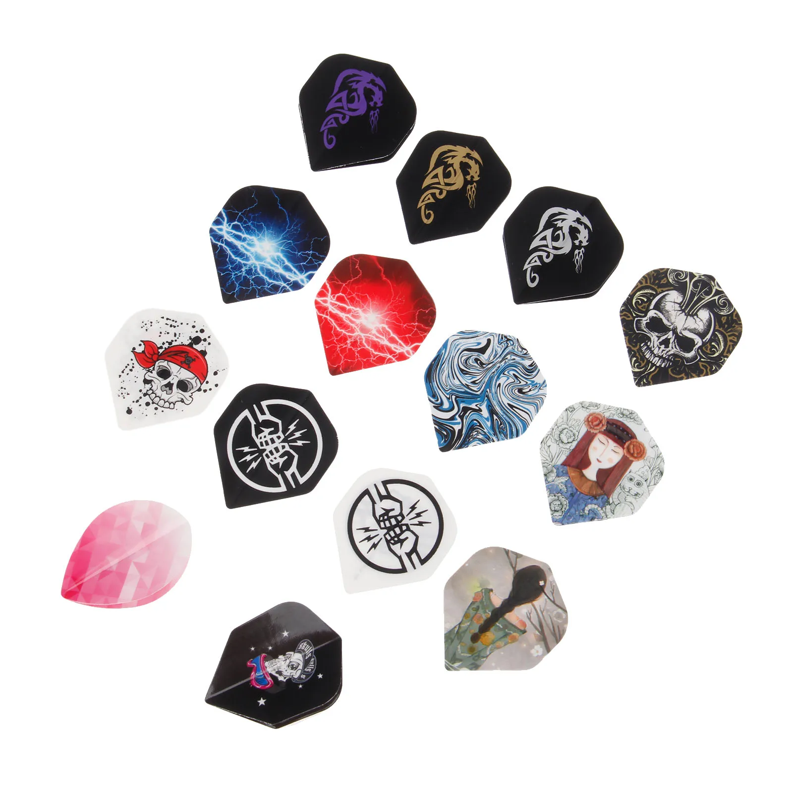 12 Pcs Cool Darts Flights Set Mixed 14 Styles Pattern Professional Standard Nice Dart Tail Flights Wing For Soft Steel Tip Darts