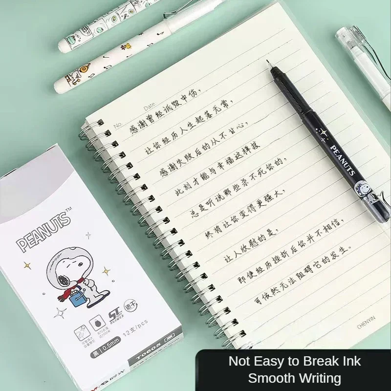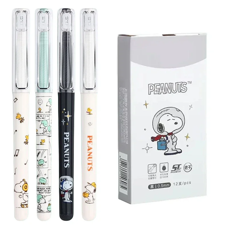 12 PCS New Snoopy cartoon signing pen Gel Pen School Office Supplies student Exam Pen Stationery Gift 0.5mm quick dry Black Ink