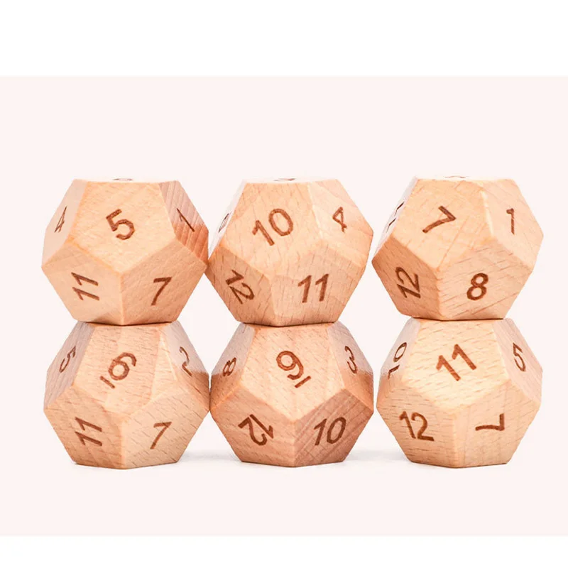 12 Side Sculpture Digital Dice Solid Wooden Dice Board Games Accessories