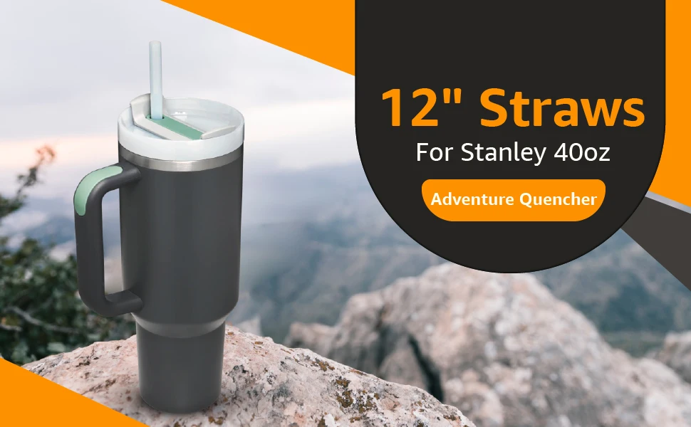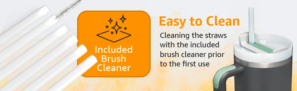 12″ Straws for Stanley 40oz and 30oz Replacement Plastic Straws for Stanley 40oz Tumbler | 6-Pack Includes Cleaning Brush