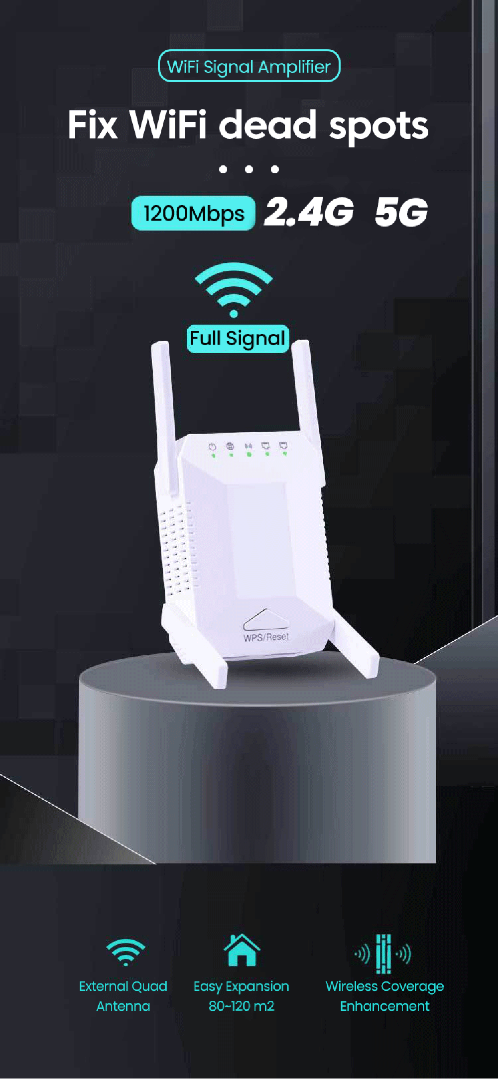 5GHz Wireless WiFi Repeater Wi Fi Booster Wireless Amplifier 1200 Mbps 5 ghz Signal Long Range Wi-Fi Extender