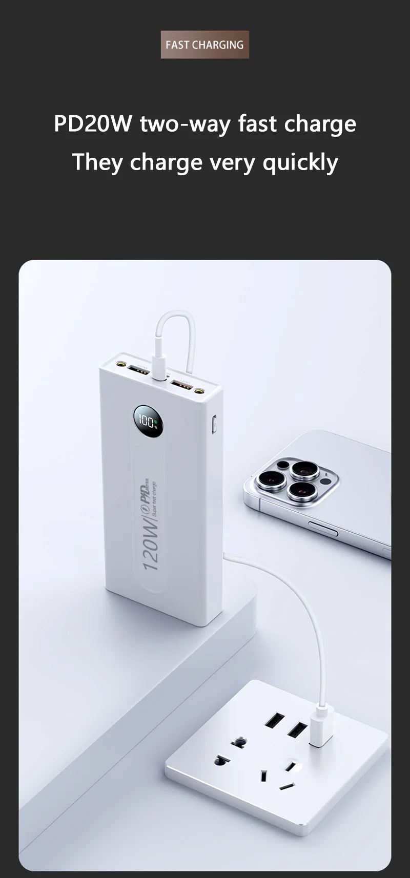 120W super fast charging, dual USB fast output