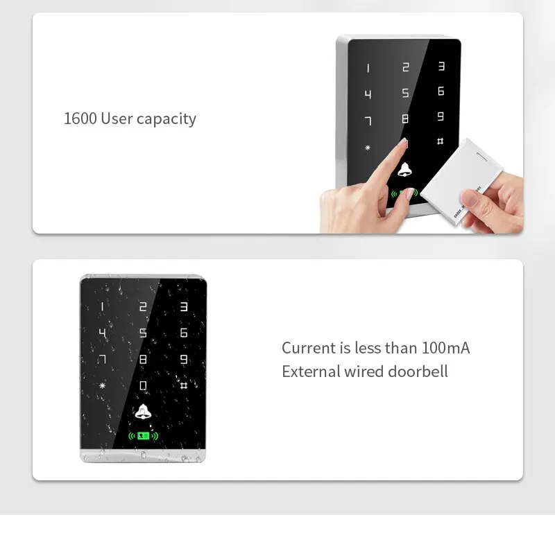 125K/Dual Frequency 125K+13.56Mhz IP67 Waterproof Access Control Keypad Outdoor RFID Access Controller Touch Door Opener System