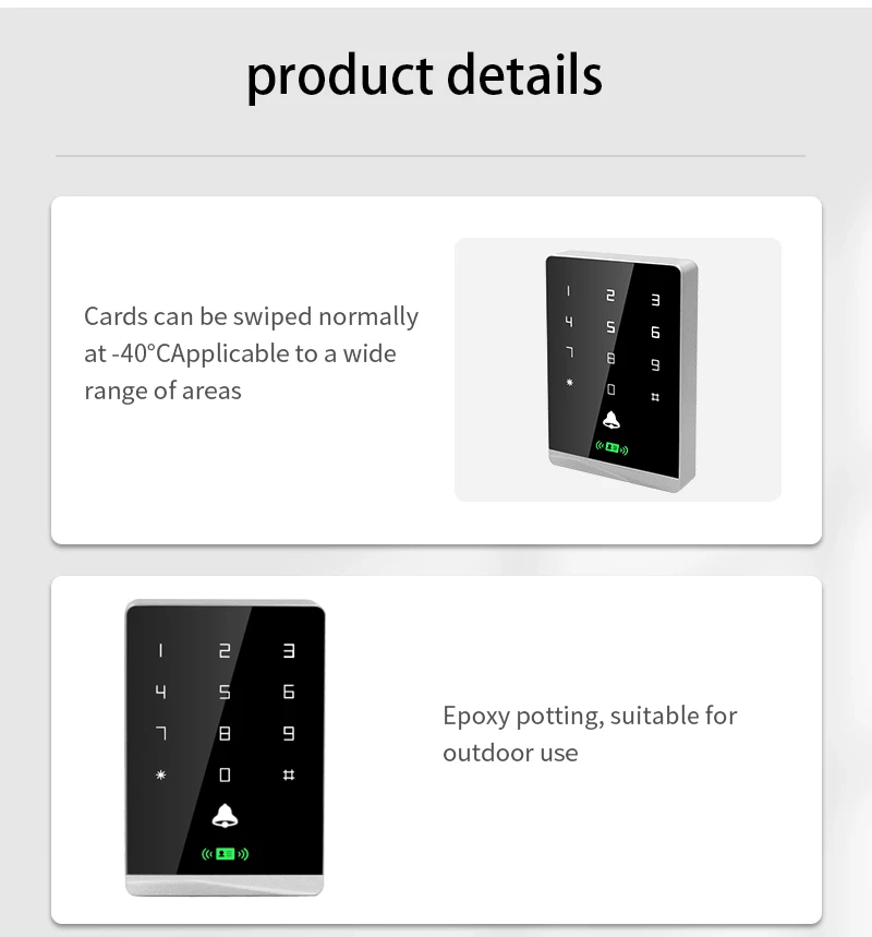 125K/Dual Frequency 125K+13.56Mhz IP67 Waterproof Access Control Keypad Outdoor RFID Access Controller Touch Door Opener System