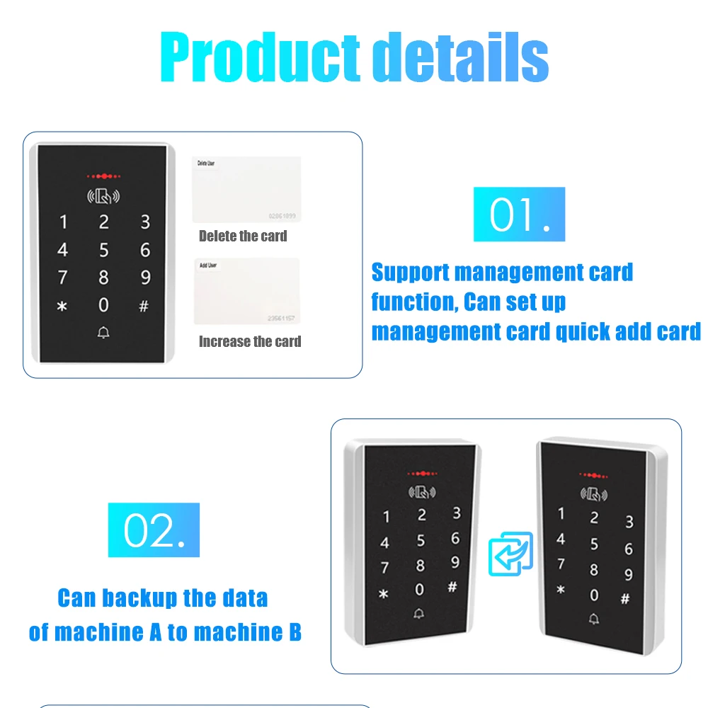 Waterproof 125KHz RFID Access Control Keypad Outdoor Rainproof Cover EM Card Reader 10pcs Keyfobs For Door Access Control System
