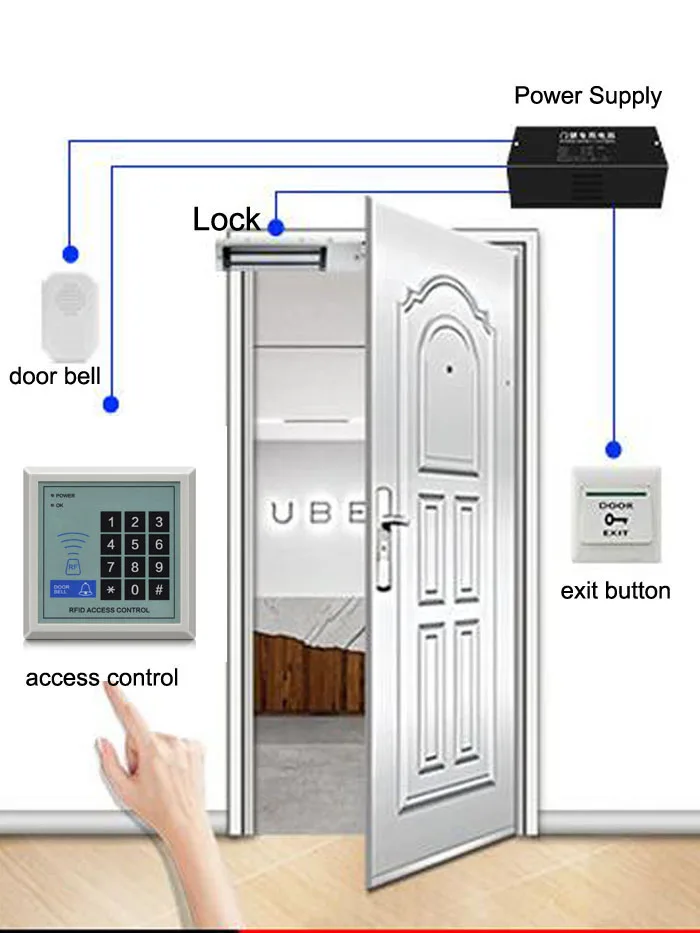 125Khz RFID Access Control System Device Machine Security RFID Proximity Entry Door Lock 1000 user Access Control Accessories
