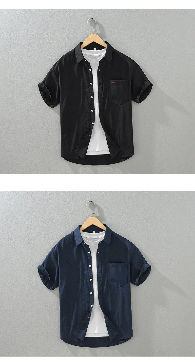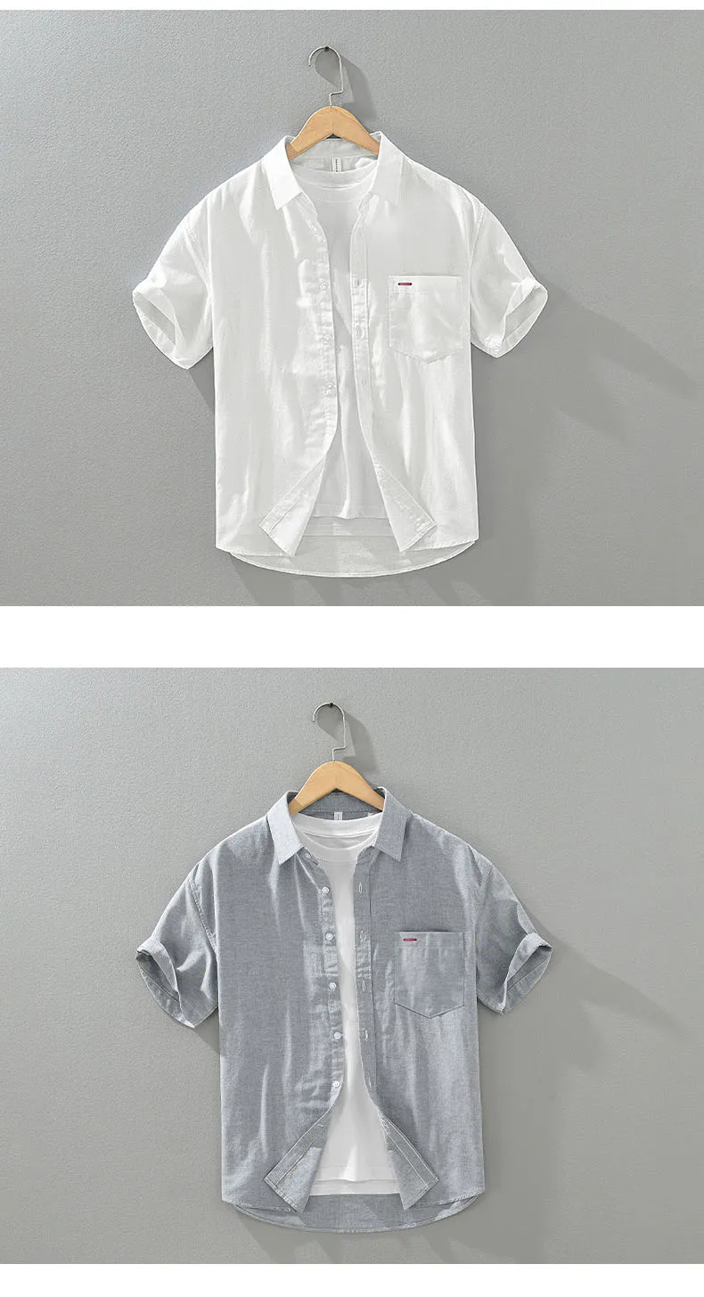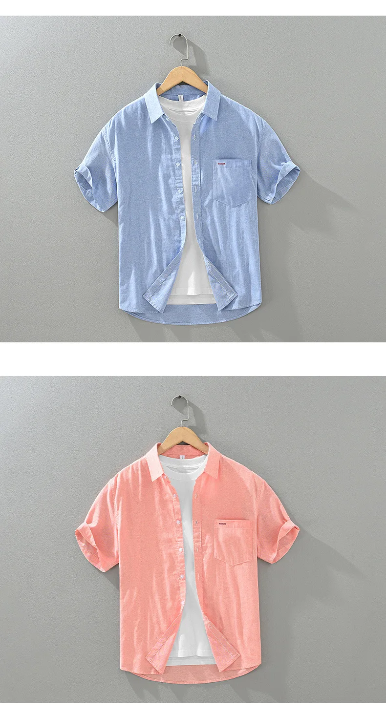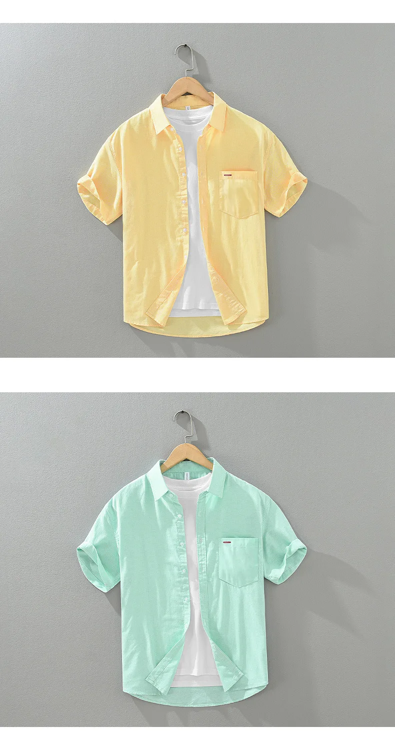 1277 Summer Men’S Shirts Fresh Style Youth Simple Solid Color Lapel Casual Loose Short Sleeve Daily All-Match Male Thin Cardigan LFFMHMT