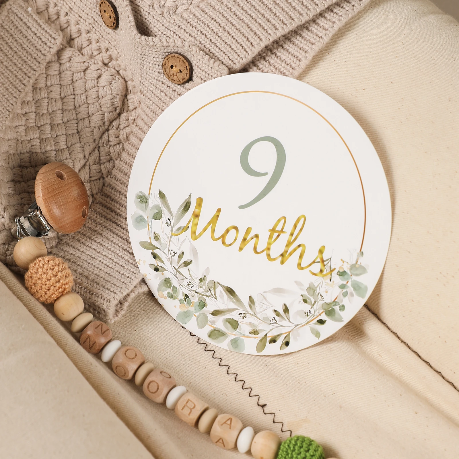 12pcs Baby Milestone Number Monthly Memorial Cards Newborn Baby Paper Wooden Engraved Age Photography Accessories Birthing Gift