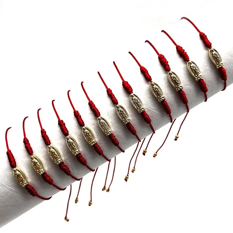 12Pcs Little Virgin Mary Red Thread Screw Knot Bracelet