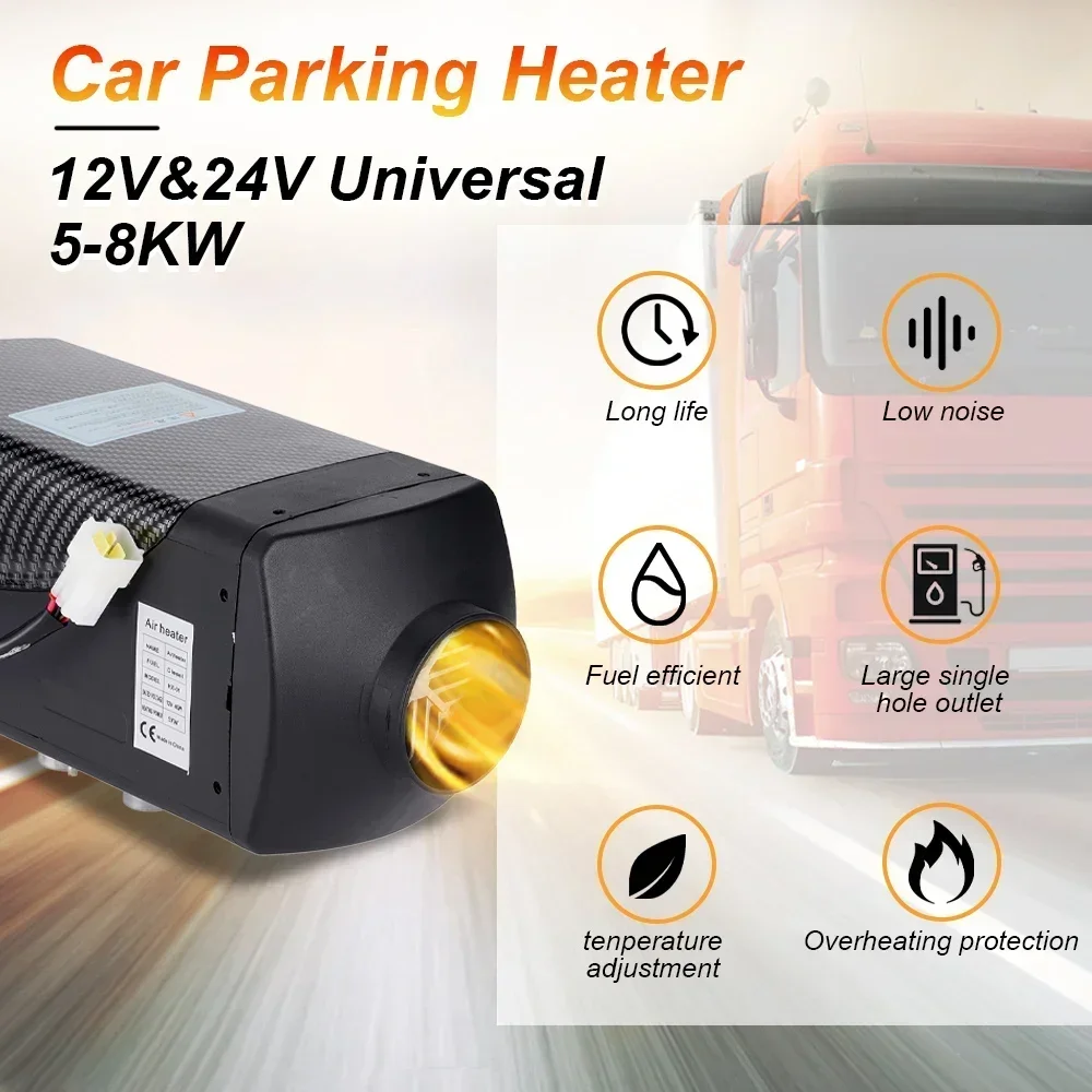 Diesel air heater 5-8KW, 12V & 24v dual voltage universal, automatic recognition voltage upgrade version, LCD switch + remote control integrated