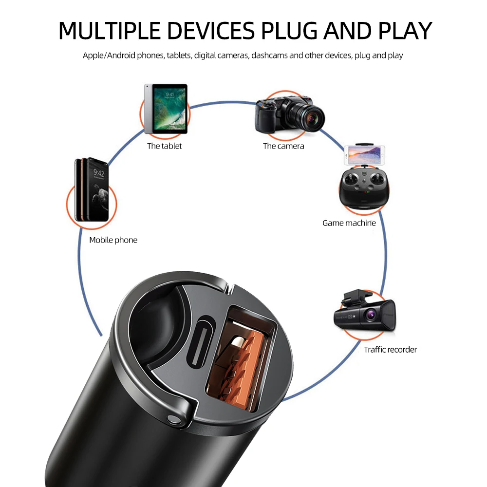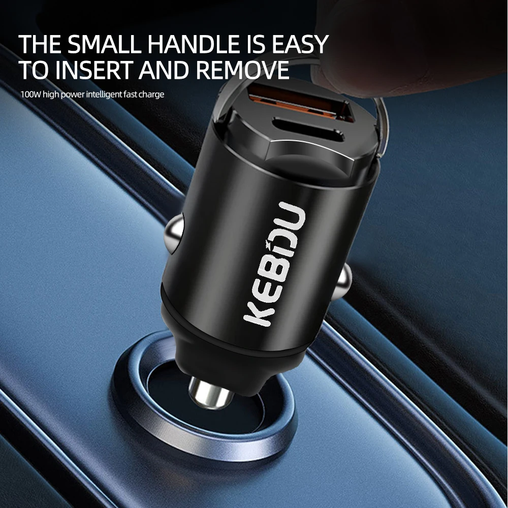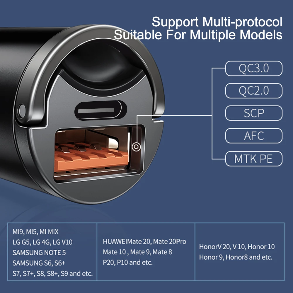 12V-24V Metal Car Charger Type-C QC 3.0 4.0 PD 3.0 100W Cigarette Lighter Fast Charging USB Phone Mini Charger Car Accessori