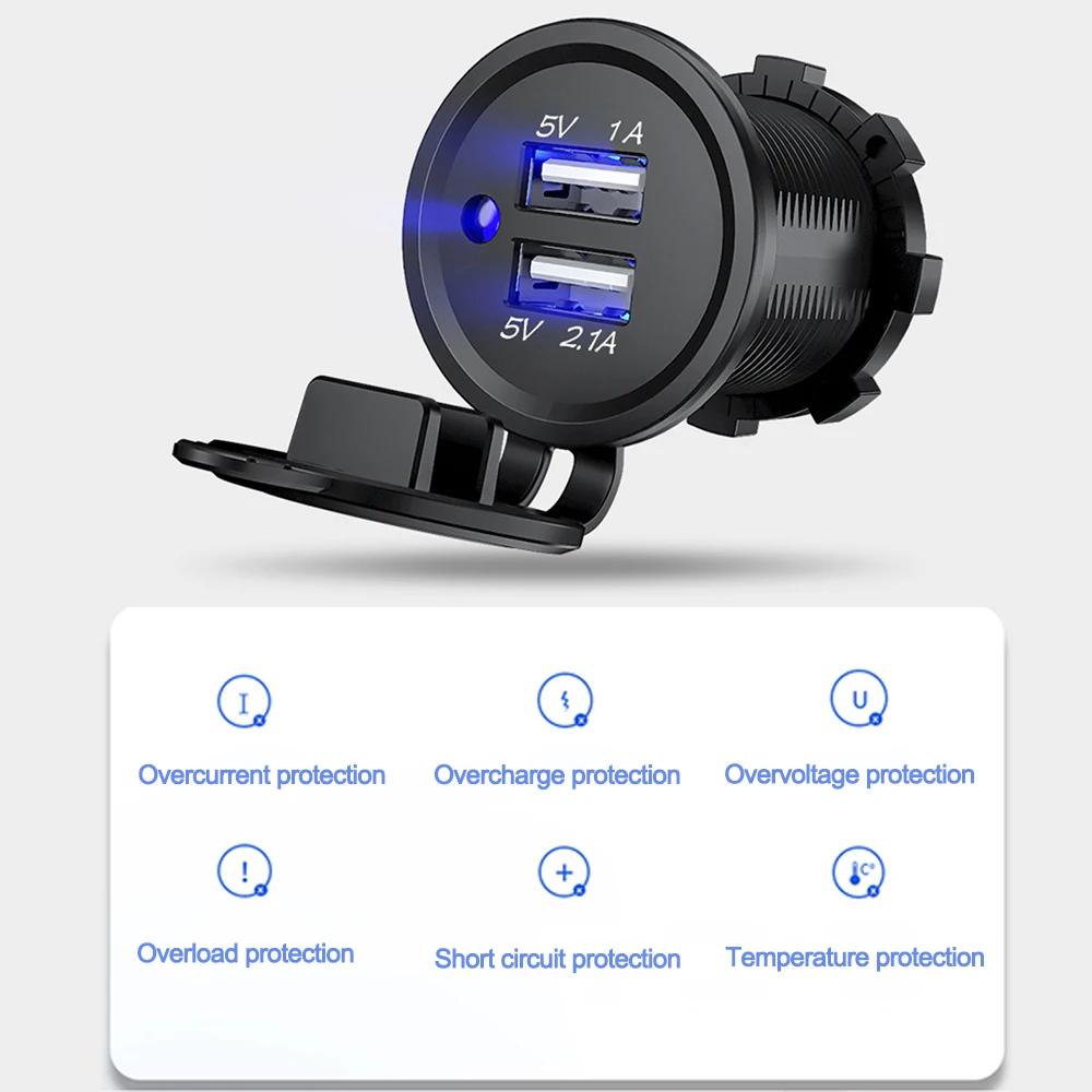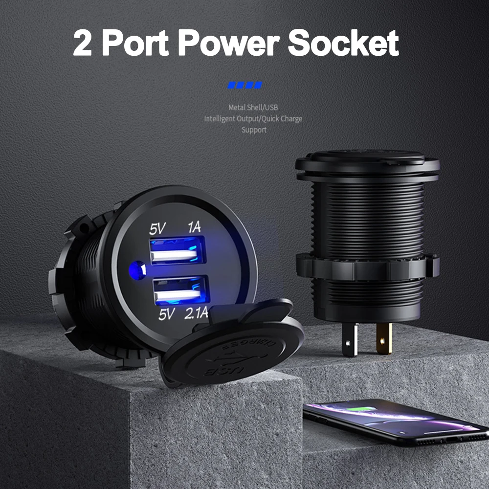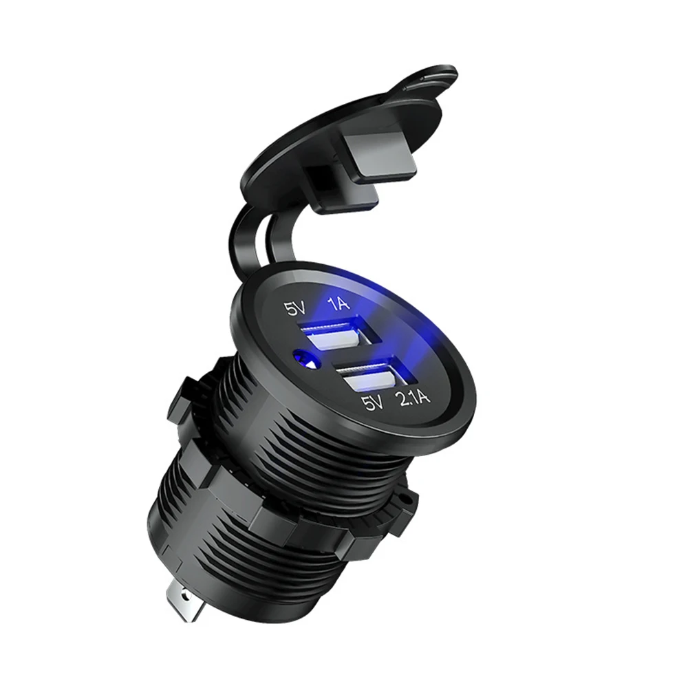 12V Dual USB Port Car Charger Socket Plug Cigarette Lighter Outlet For Auto Boat Waterproof Mobile Phone Charging Adapter
