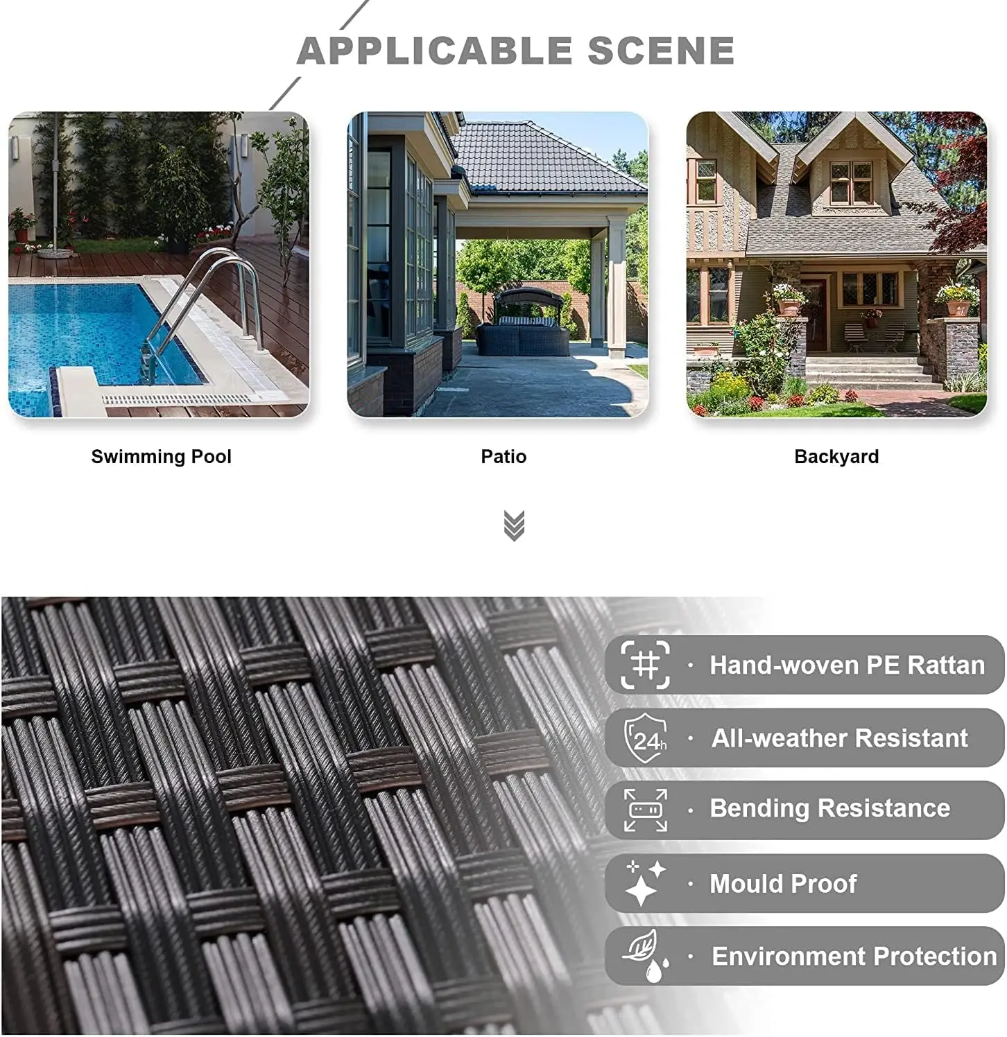 - DURABLE AND STURDY MATERIAL: patio conversation set features a new brown wicker made of high-density polyethylene with a thickened stainless steel frame, making it more stylish, more durable and suitable for all weather.