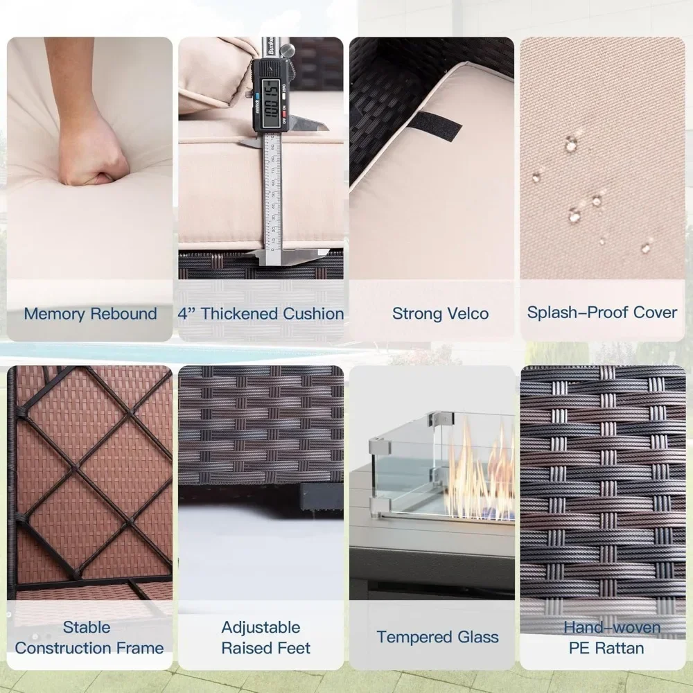 13 Pieces Outdoor Patio Furniture Set with Gas Propane Fire Pit Table,PE Wicker Rattan Sectional Sofa Patio Conversation Sets