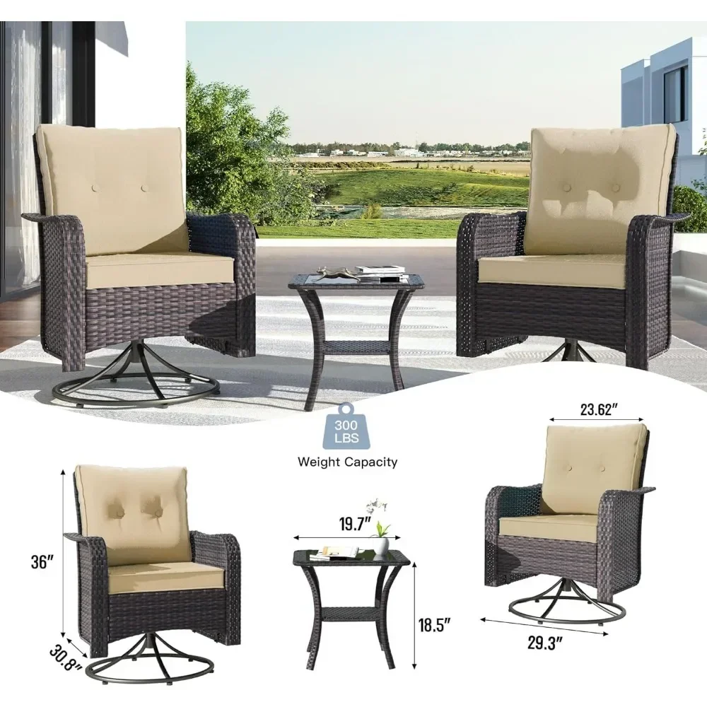 - 360 Degree Swivel Rocking:2 rocking chairs perfectly combine the functions of rocking and swiveling,they can rotate 360 degrees in all directions and rock back and forth,swivel in any direction as needed.Kullavik uses new brown wicker made of high-density polyethylene and a thick stainless steel frame to create stylish,lightweight,and durable patio furniture that can withstand the ever-changing weather.