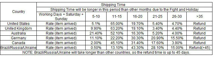 - Items will arrive in 7-25 business days to worldwide usually. And the arrival time also depends on some factors and different areas.