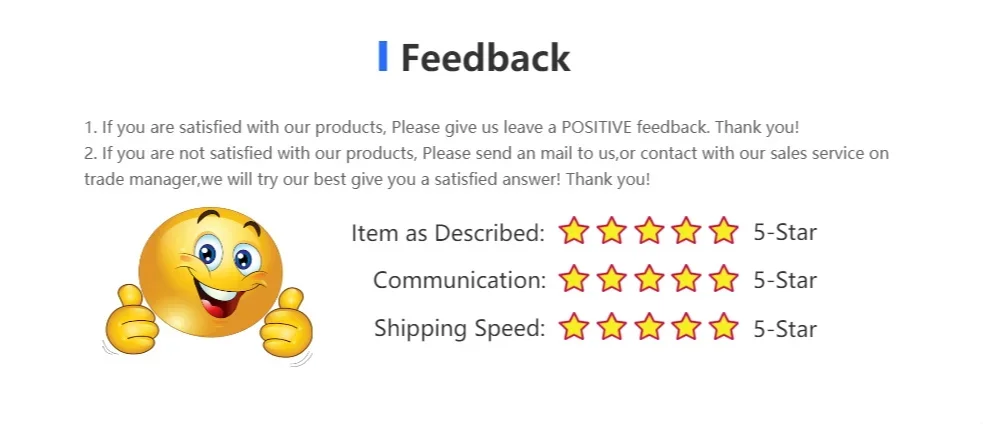 Your positive feedback is so important for us, please leave 5 stars feedback, thanks.Please don’t leave negative or neutral feedback or dispute, these can’t solve your problem,we will do our best to solve any problem in a short time.