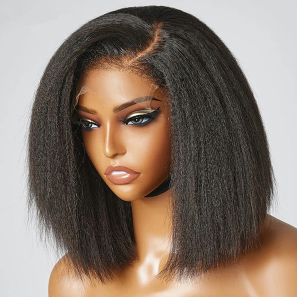 13X4 Glueless Kinky Straight Frontal Wigs 100% Human Hair Ready To Wear Bob Peruvain Hair Yaki Straight Wigs For Women On Sale