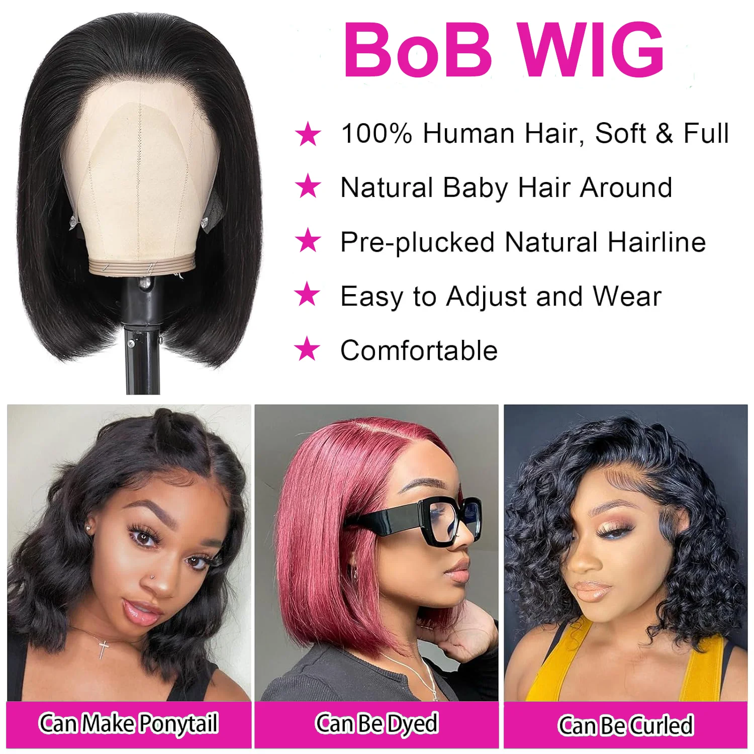 13X4 Lace Front Wig Pre Plucked Human Hair Wigs For Women Wigs Short Straight Bob Wigs Remy Brazilian Human Hair Wigs Sale 200%