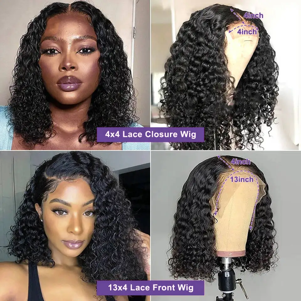 13×4 Lace Frontal Human Hair Bob Wigs Deep Wave 200% Brazilian Short Bob 4×4 Transparent Lace Closure Front Wigs Curly For Women