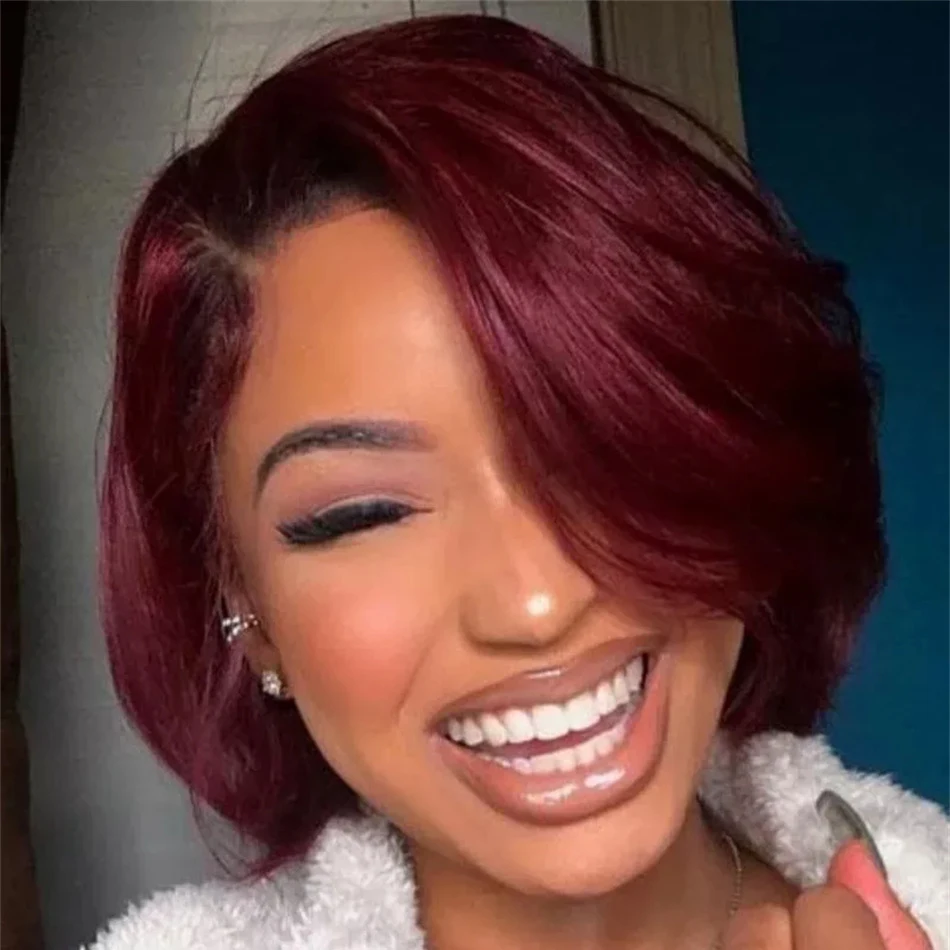 13×4 Pixie Cut Wig Human Hair Wigs Straight Lace Transparent Short Bob Wig T Part Lace Wig Brazilian Human Hair For Women