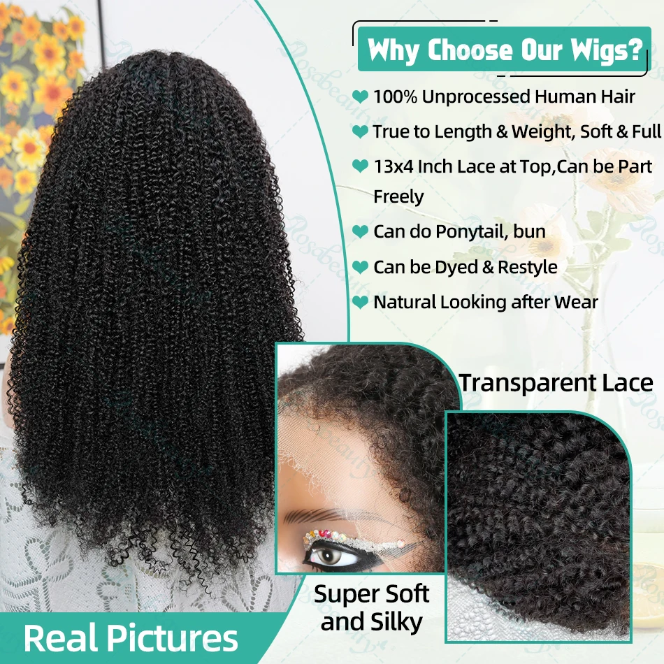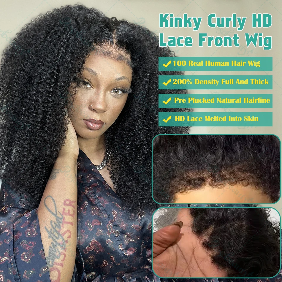 13×6 Kinky Curly 4C Edges HD Lace Frontal Wig Human Hair Deep Curly 13×4 Transparent Lace Front Wigs 30Inch Glueless Closure Wig
