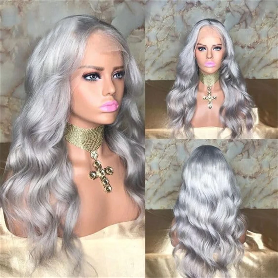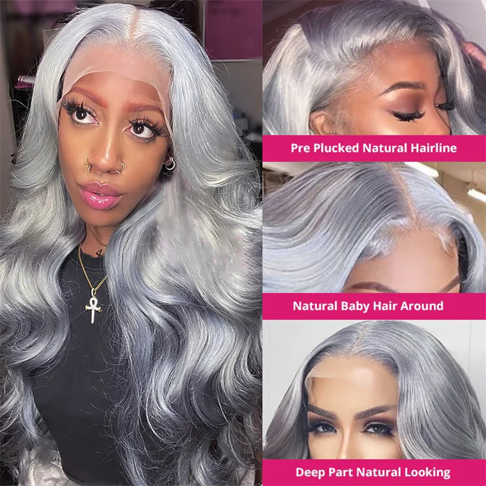 13×6 Sliver Grey Lace Front Wig Colored Human Hair Wigs Body Wave 30 Inch Lace Frontal Wig Gray Colored Human Hair Wigs On Sale
