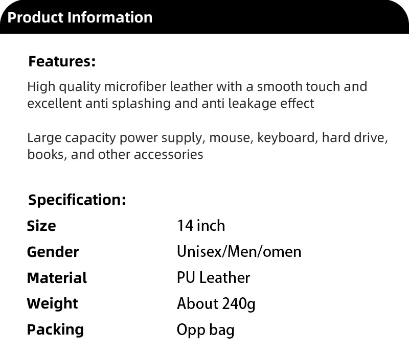 This Laptop Bag is made of PU Leather material, Lightweight and durable. Waterproof and wear-resistant.