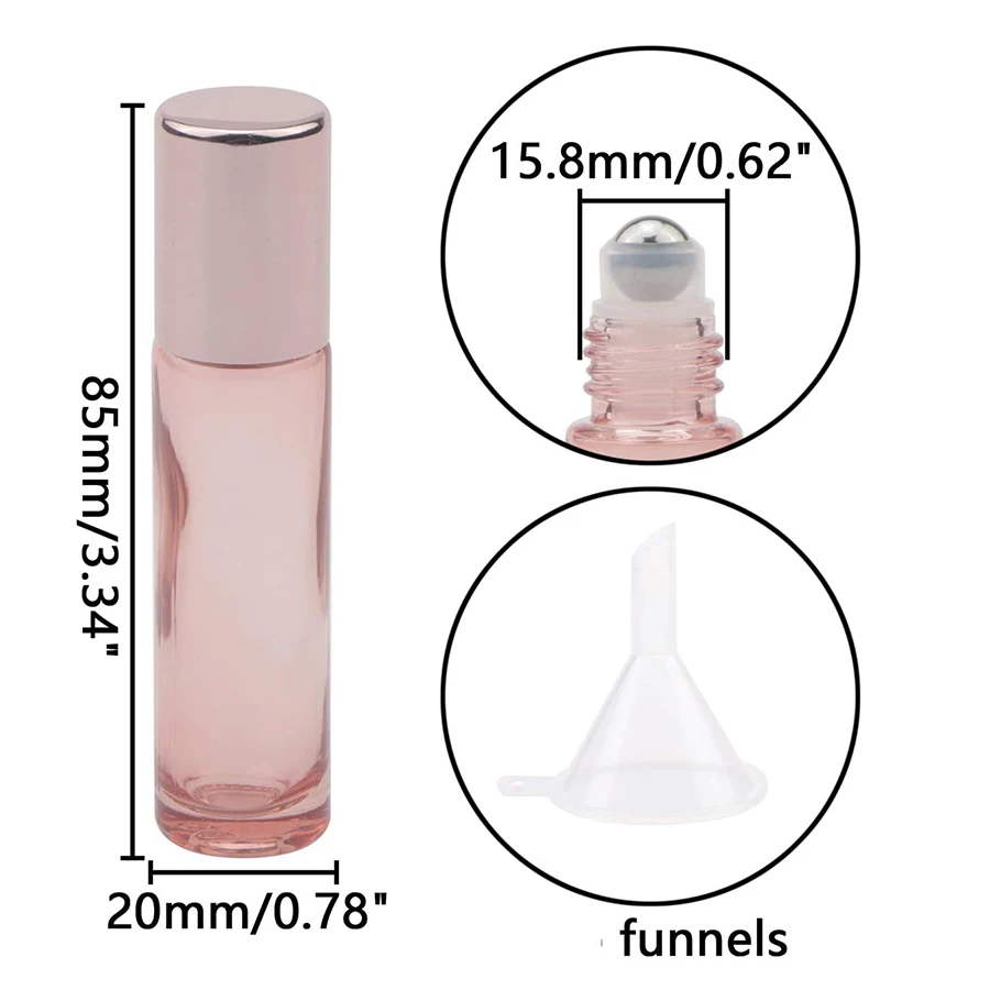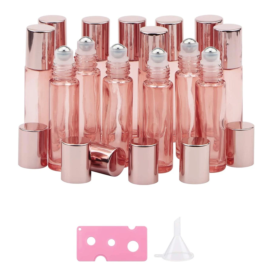 14Pack 10ml Roller Bottles Empty Glass Essential Oil Roller Bottles With Stainless Steel Balls Roller Bottles and Opener Funnel