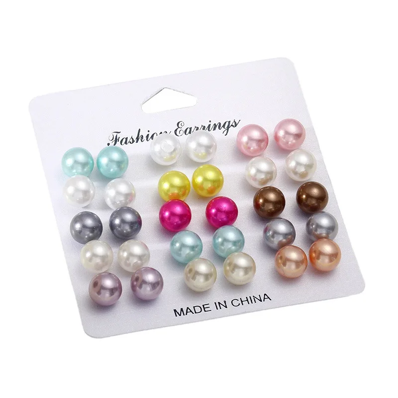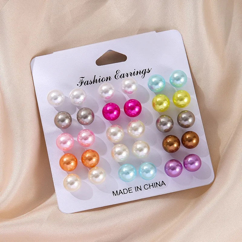 15 Pairs of Circular Colored Dopamine Minimalist Artificial Pearl Earrings Set, Suitable for Daily Wear and Fashionable Jewelry