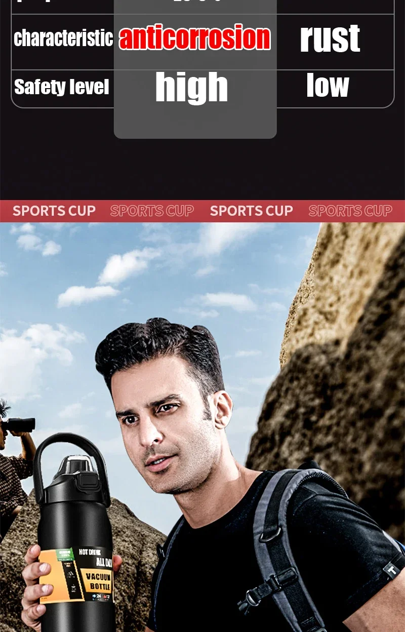 Nsulated Thermos Bottle Stainless Steel Thermal Mug Large Capacity Thermos Bottle with Tumbler Sports Cup Drinks Vacuum Flasks