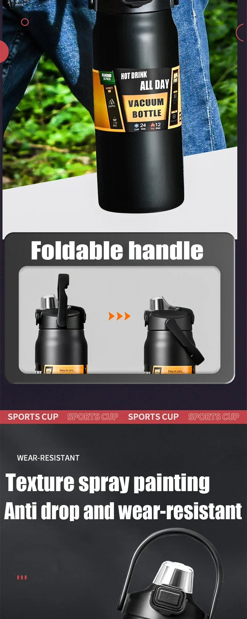 Our thermos is designed with a large capacity and can hold up to 1500ml of your favorite beverage, making it perfect for sharing with friends or family. The dual wall structure provides the best insulation effect, allowing your drink to stay hot and cold for up to 6-12 hours. The high-quality materials used in our thermos ensure its durability and durability. The lightweight and portable design makes it easy to carry, making it very suitable for outdoor exploration, long-distance commuting, or daily use.