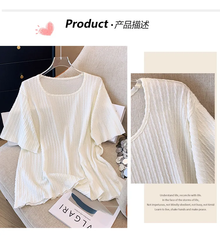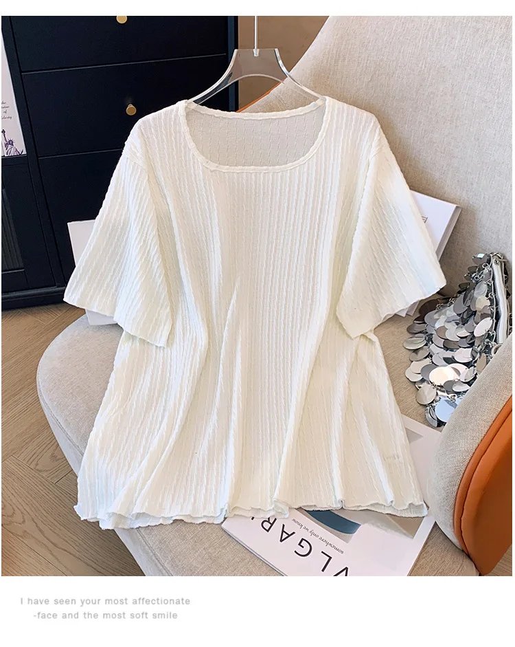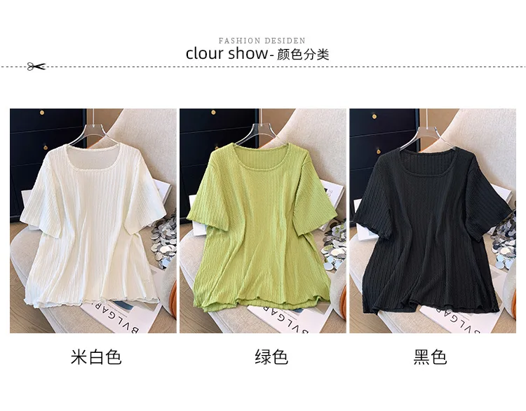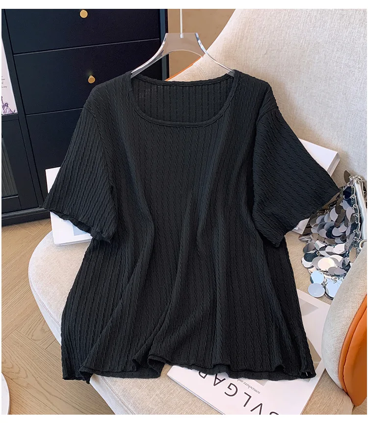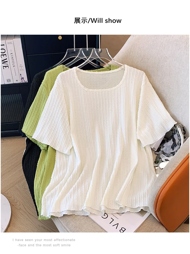 150Kg Plus Size Women’s Bust 160 Summer Loose Slanted Needle Jacquard Square Neck Short Sleeved T-Shirt 5XL 6XL 7XL 8XL 9XL