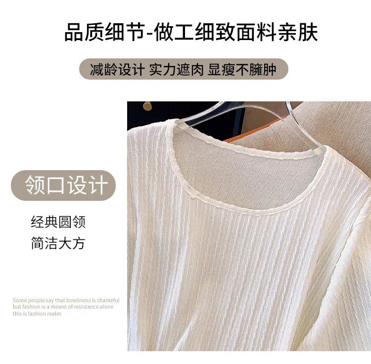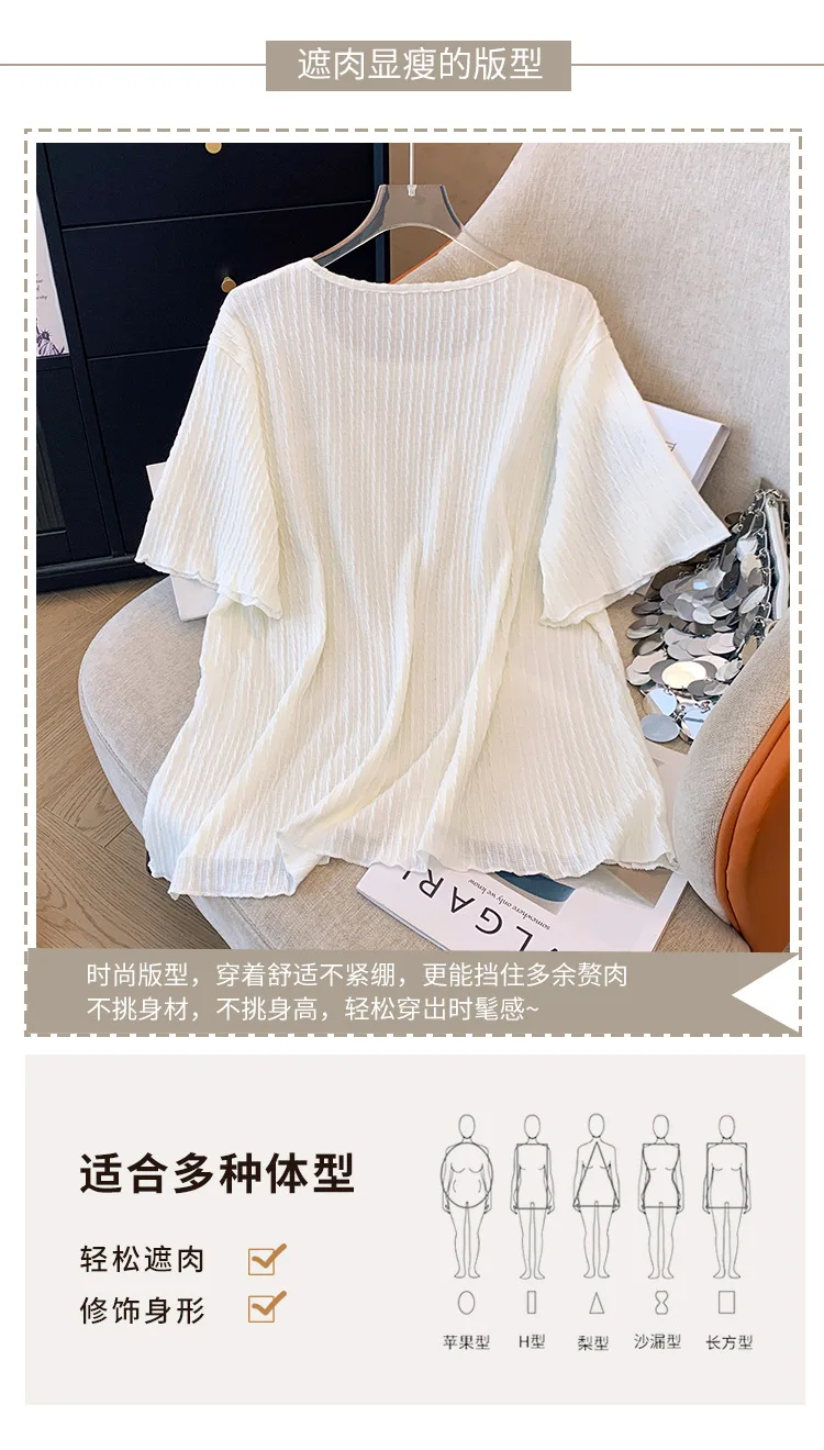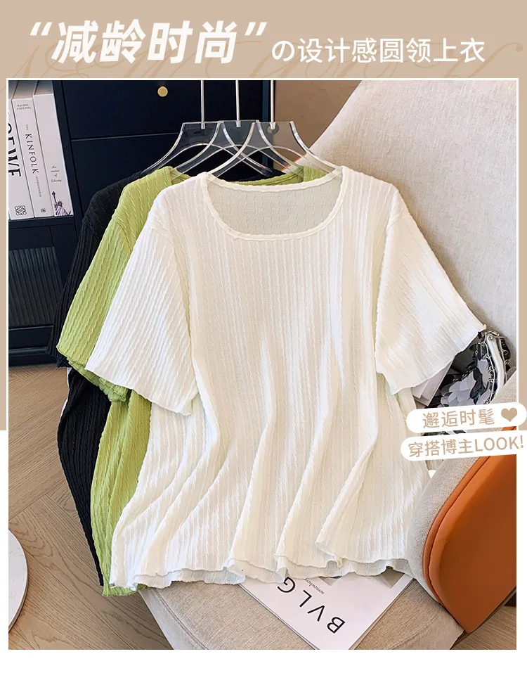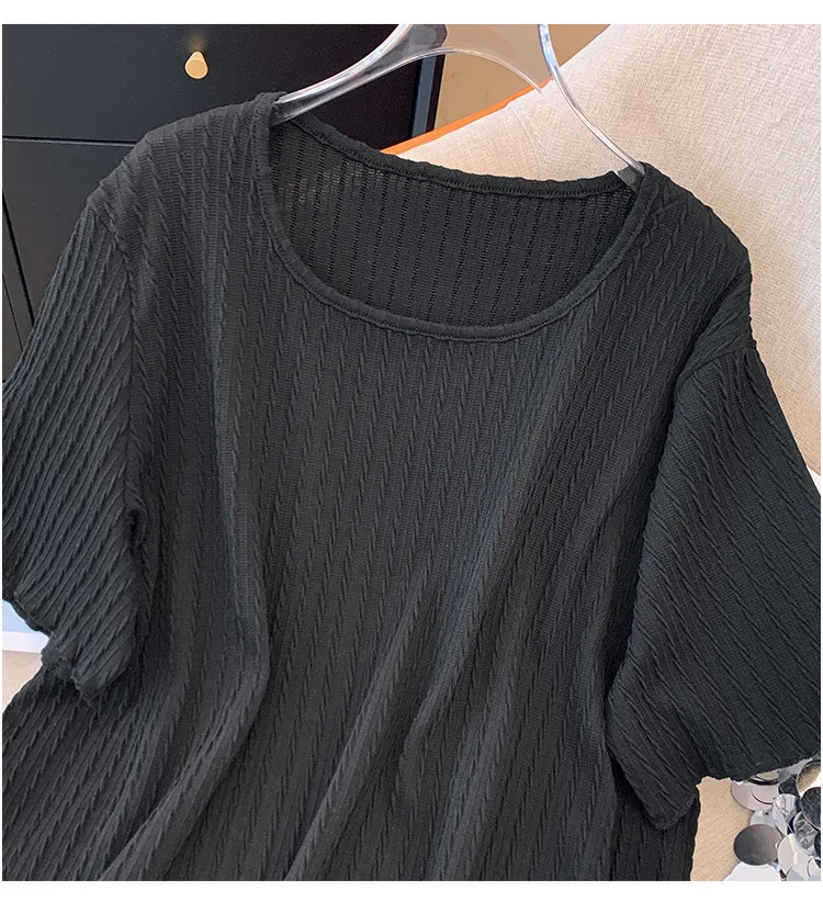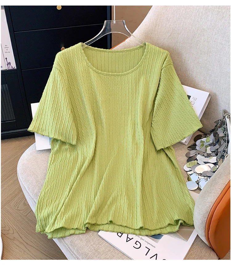 150Kg Plus Size Women’s Bust 160 Summer Loose Slanted Needle Jacquard Square Neck Short Sleeved T-Shirt 5XL 6XL 7XL 8XL 9XL