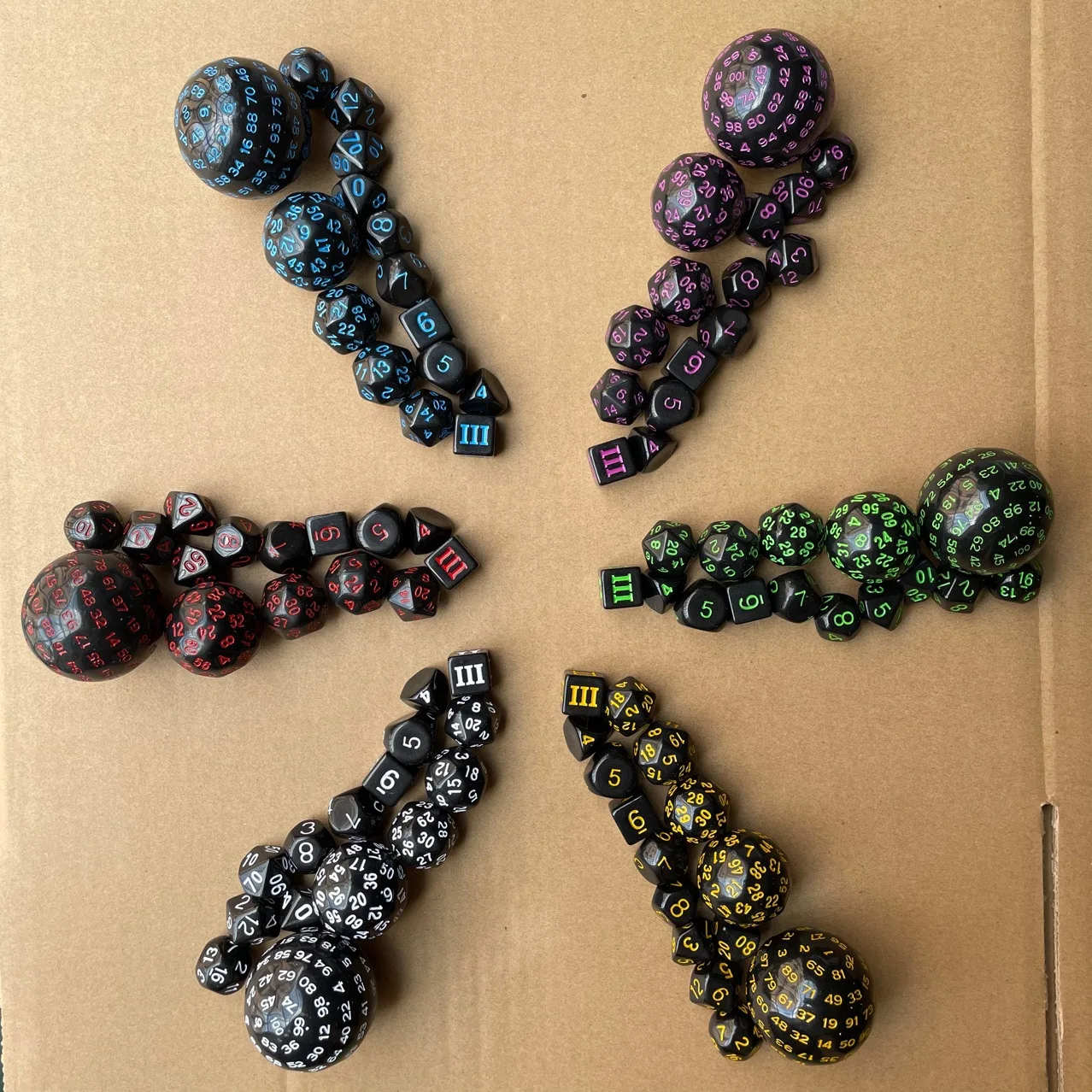 Name: Set of 15 dice with 3 sides to 100 sides (set)