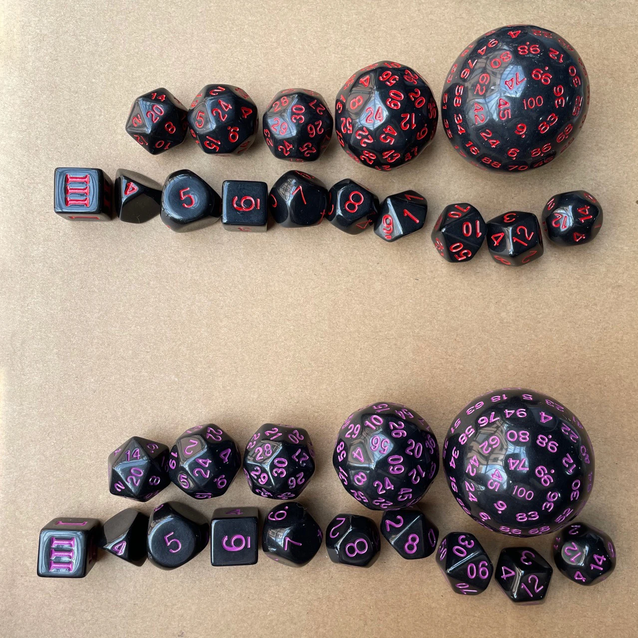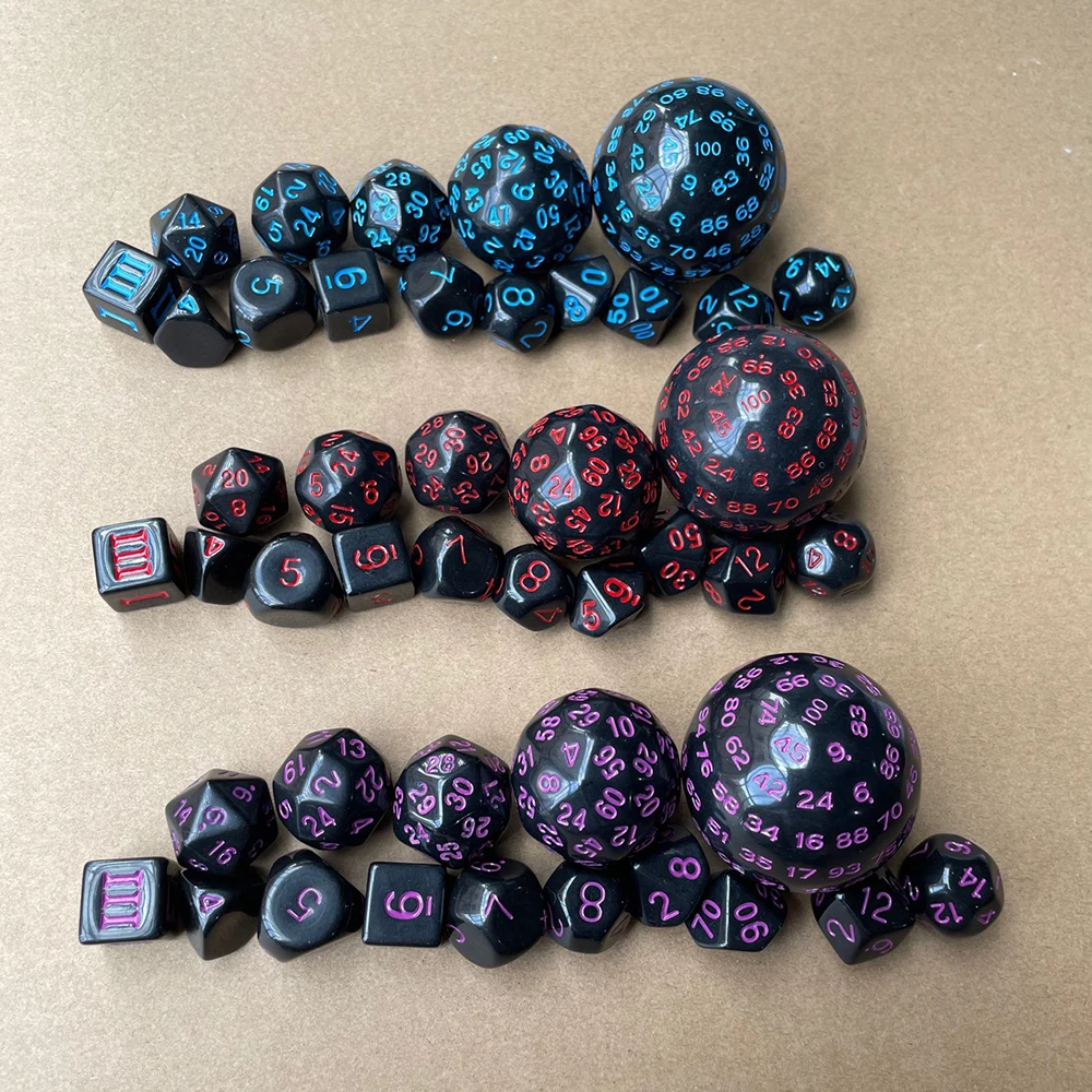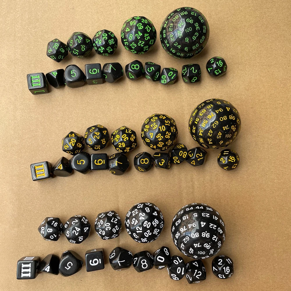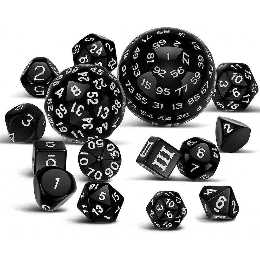 15Pcs/Set Polyhedral Dice D3-D100 Spherical RPG Complete DND Opaque Black 100 Sides Dices Role Playing Table Party Board Game