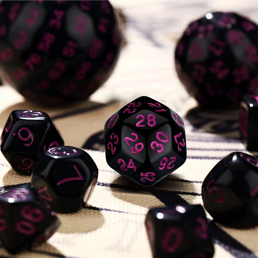 Classic color matching: these tabletop RPG dices are featured with black background and purple fonts, simple, classic, pretty and useful, so the numbers are clear and easy to read, nice for game supplied, which also can be applied as desktop decoration to show your personality.