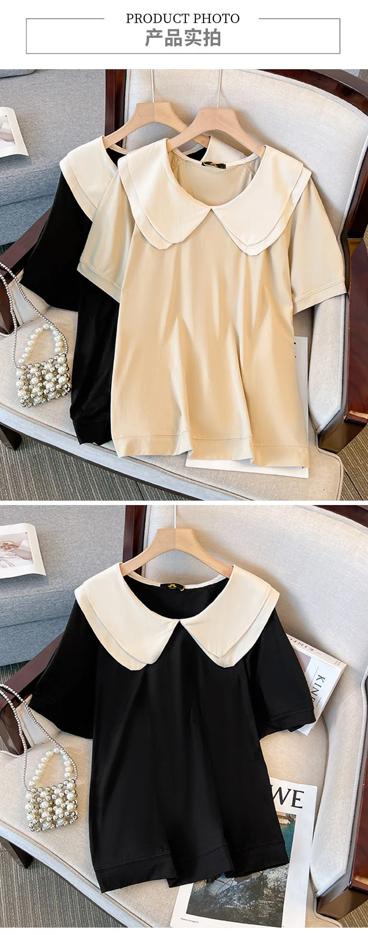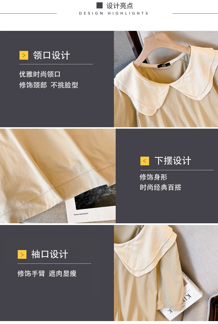 160Kg Plus Size Women T-Shirt 100% Cotton Bust 152 Summer Loose Peter pan Collar Short-Sleeved Tops Black 6XL 7XL 8XL 9XL 10XL