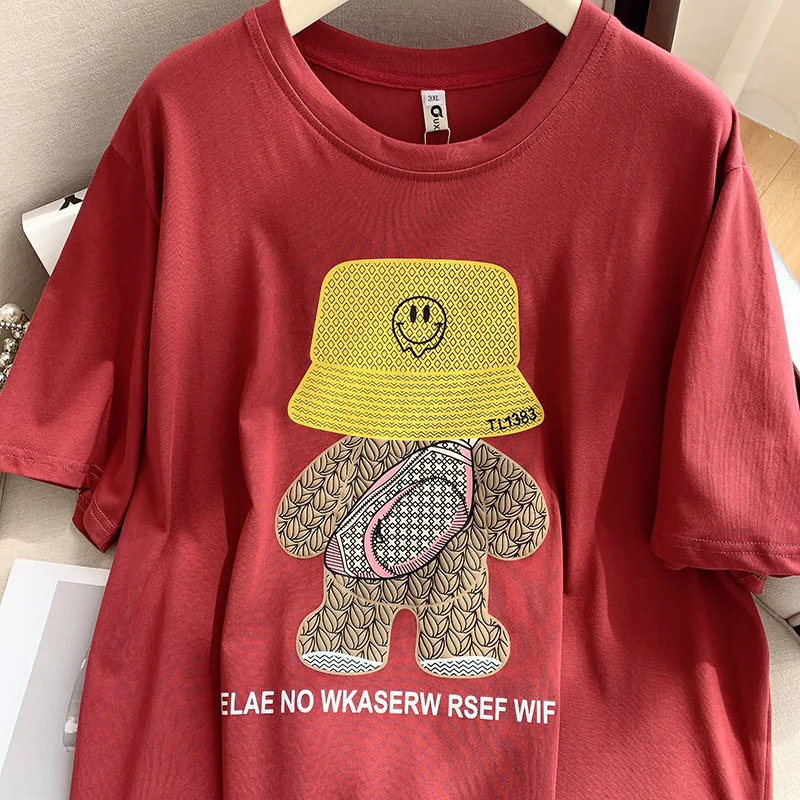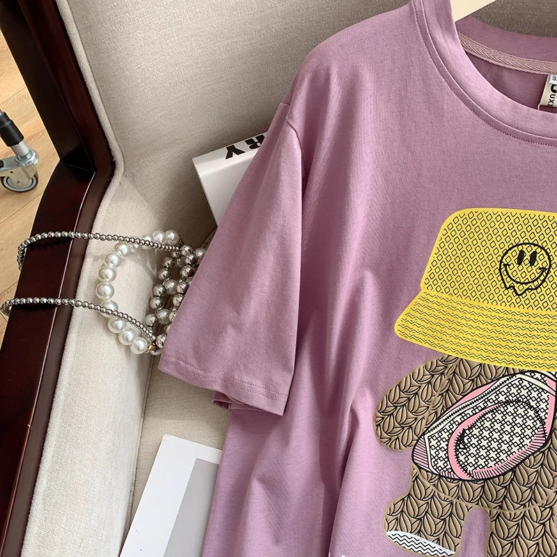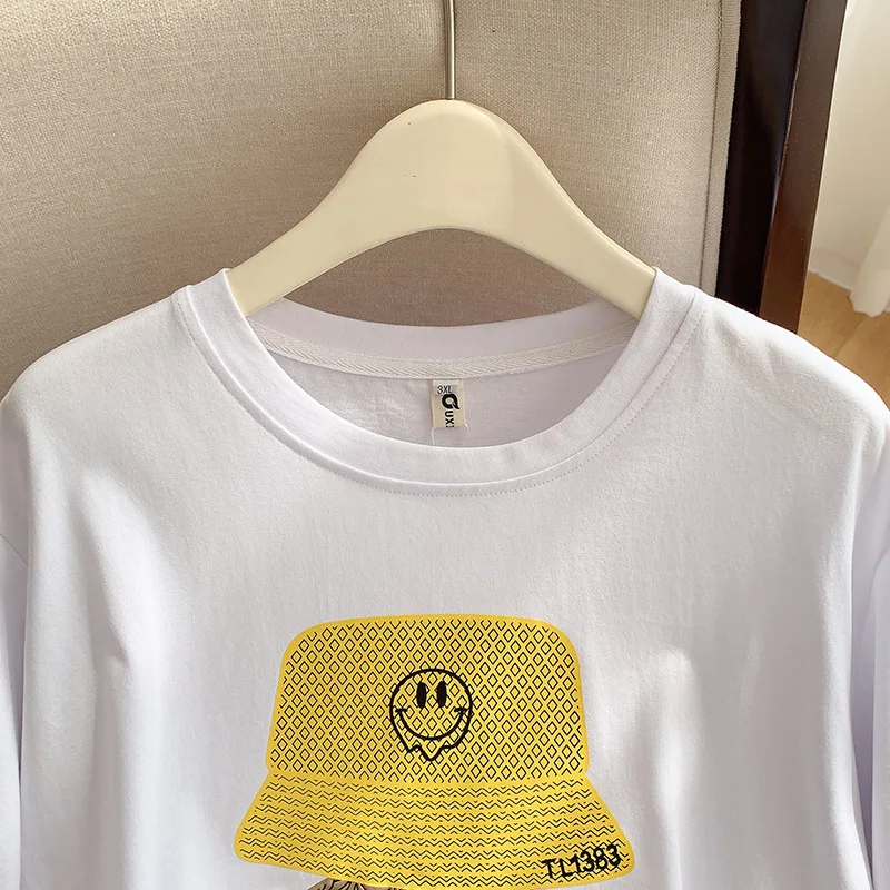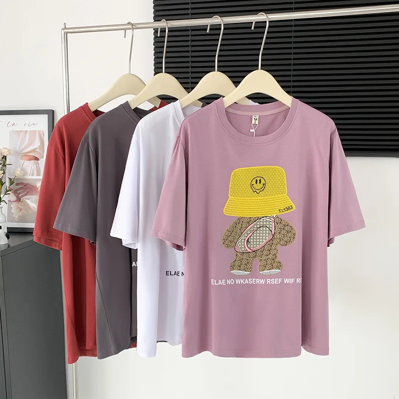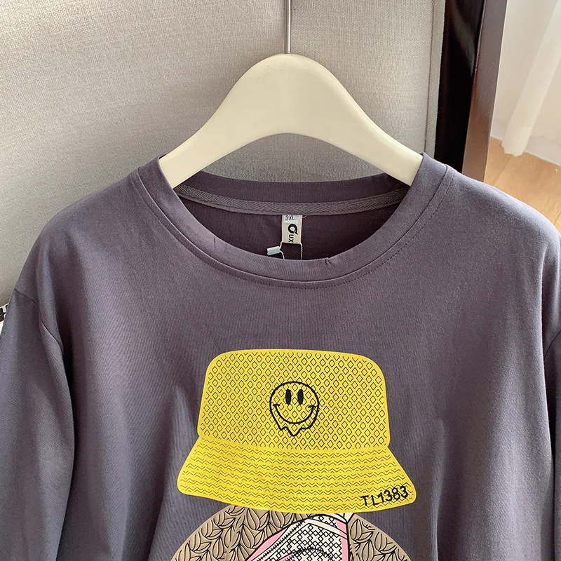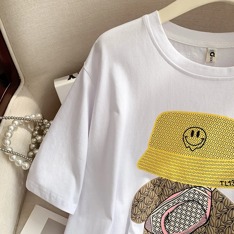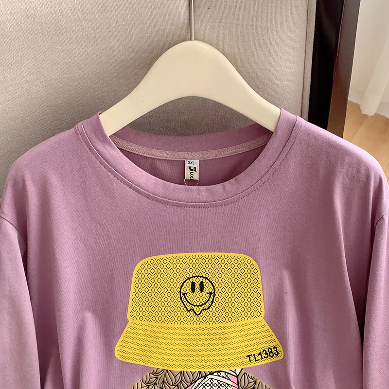 160Kg Plus Size Women’s Bust 160 Summer Loose Cartoon Round Neck T-shirt 4 Colors 6XL 7XL 8XL 9XL 10XL