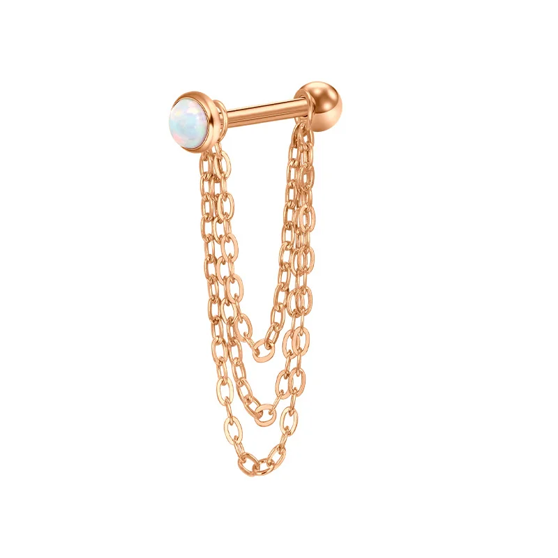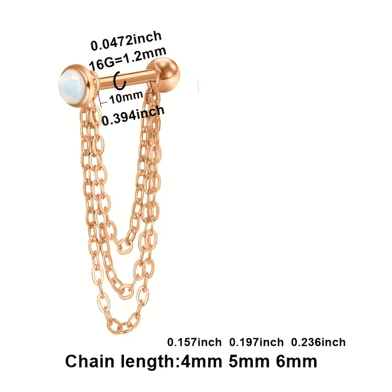Ring Gauge: 16g=1.2mm, Studs Length=10mm, Ball Size: 3mm. Chain length4mm 5mm 6mm ;Chain length2cm & 2.5cm & 3cm