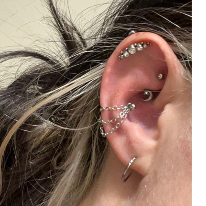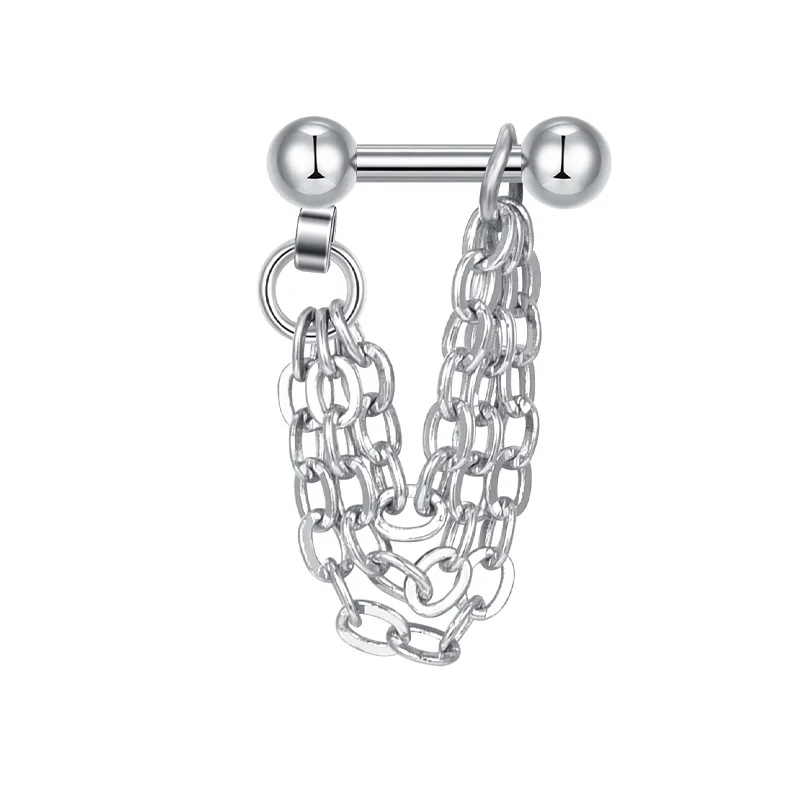 16G Helix Cartilage Tragus Barbell with Chain Earrings piercing Stainless Steel Ball Stud Earring Men Women Tassel Chain jewelry