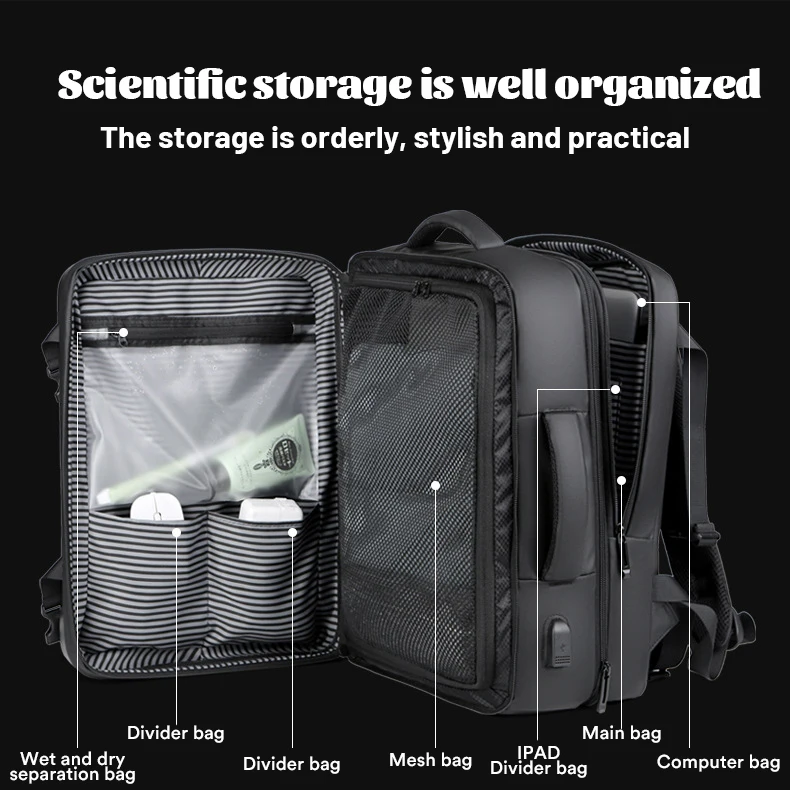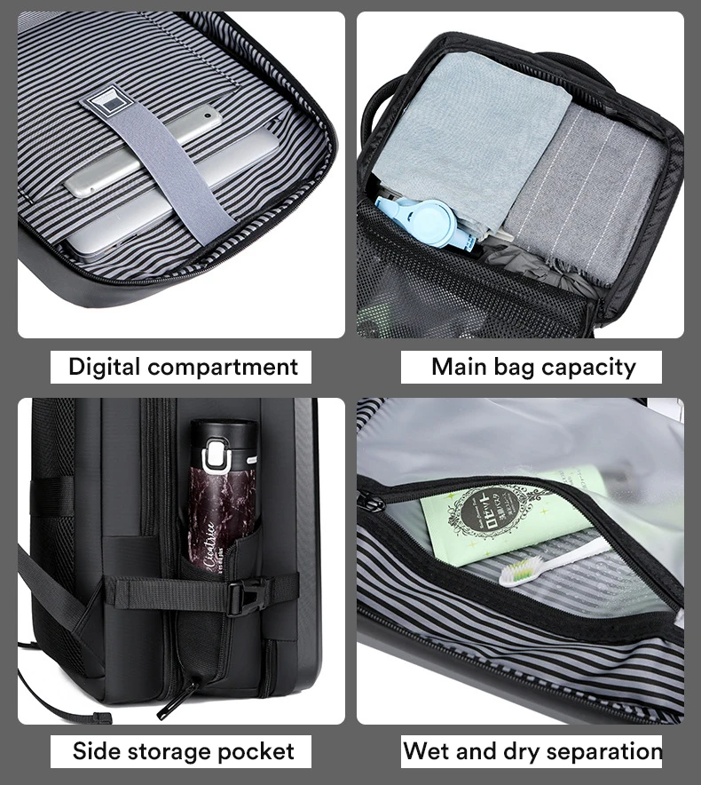 17.3”Hard Shell Backpack Men’s Business Laptop Backpack Thickened 50L Large Capacity Travel Bag Fashion Trend Computer Backpack