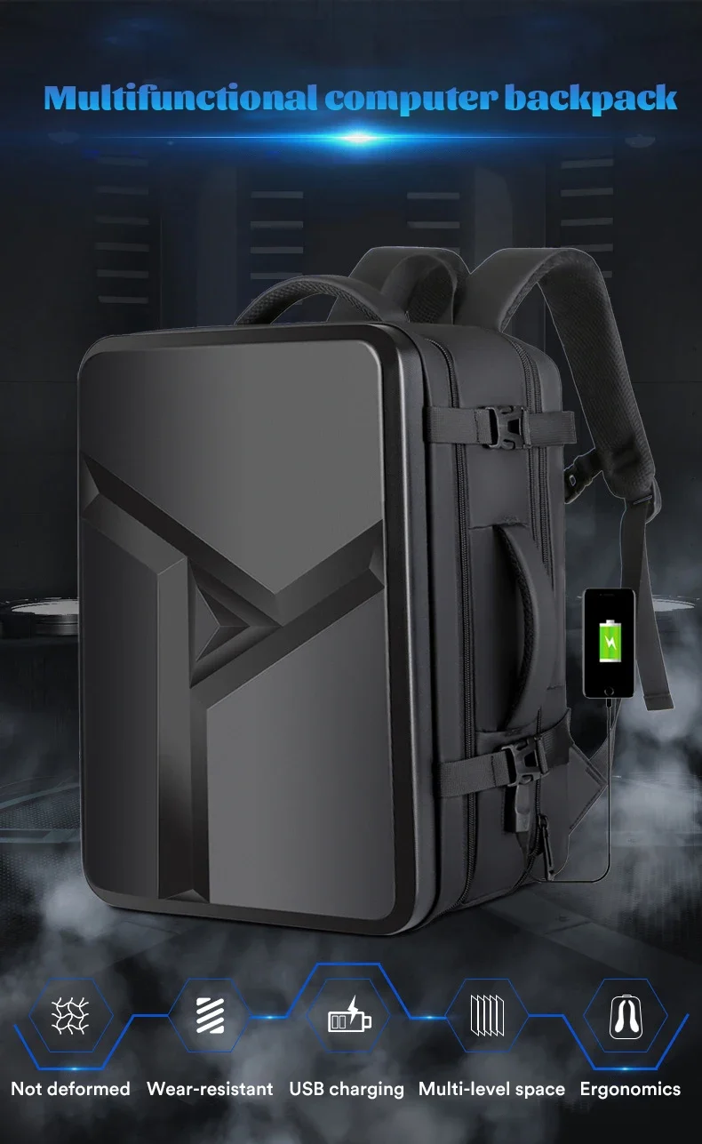 17.3”Hard Shell Backpack Men’s Business Laptop Backpack Thickened 50L Large Capacity Travel Bag Fashion Trend Computer Backpack