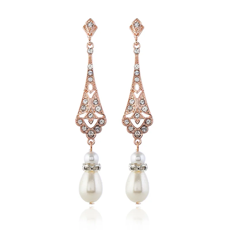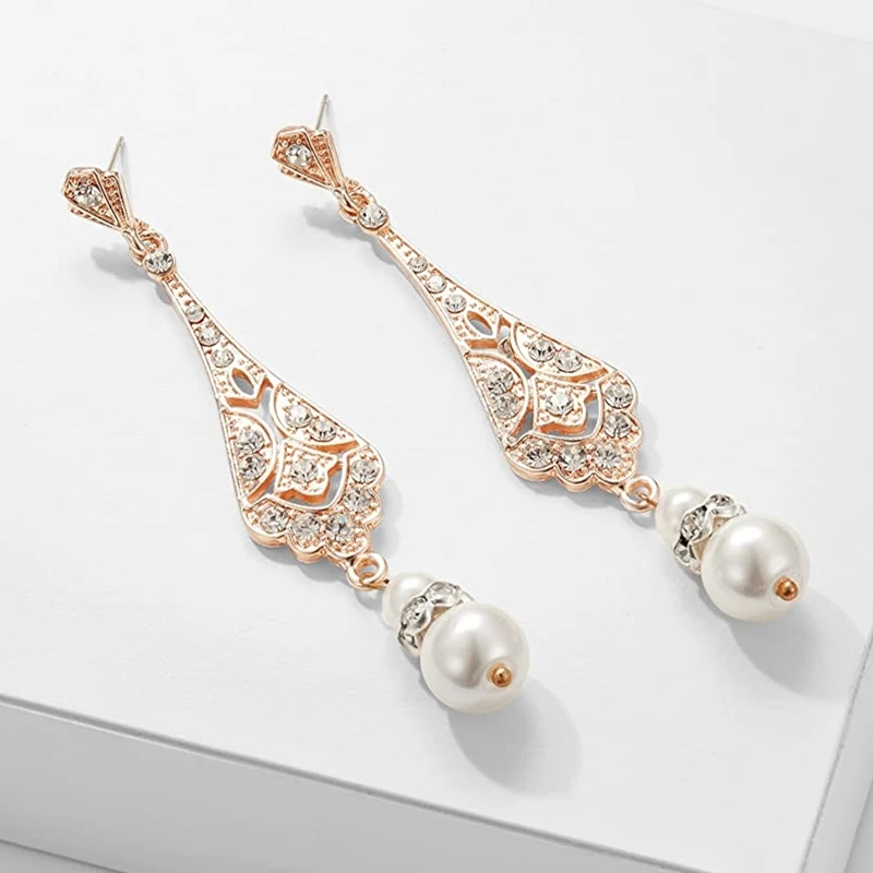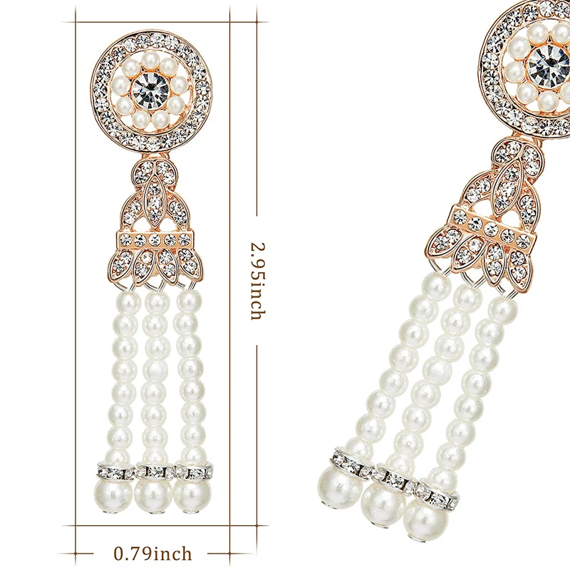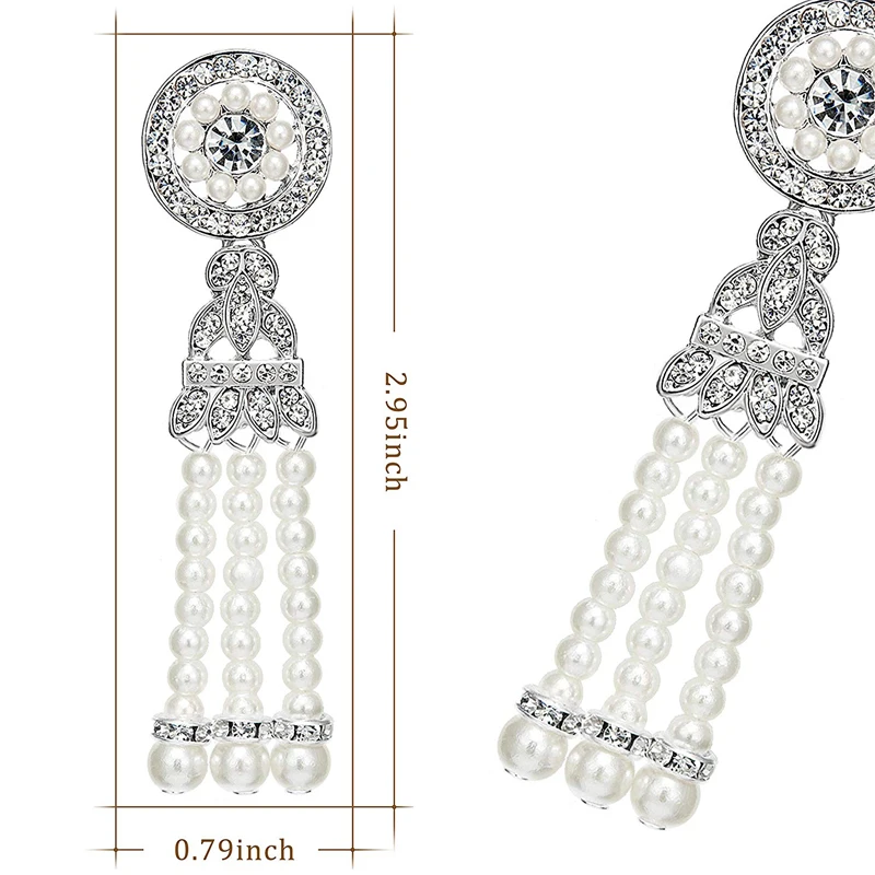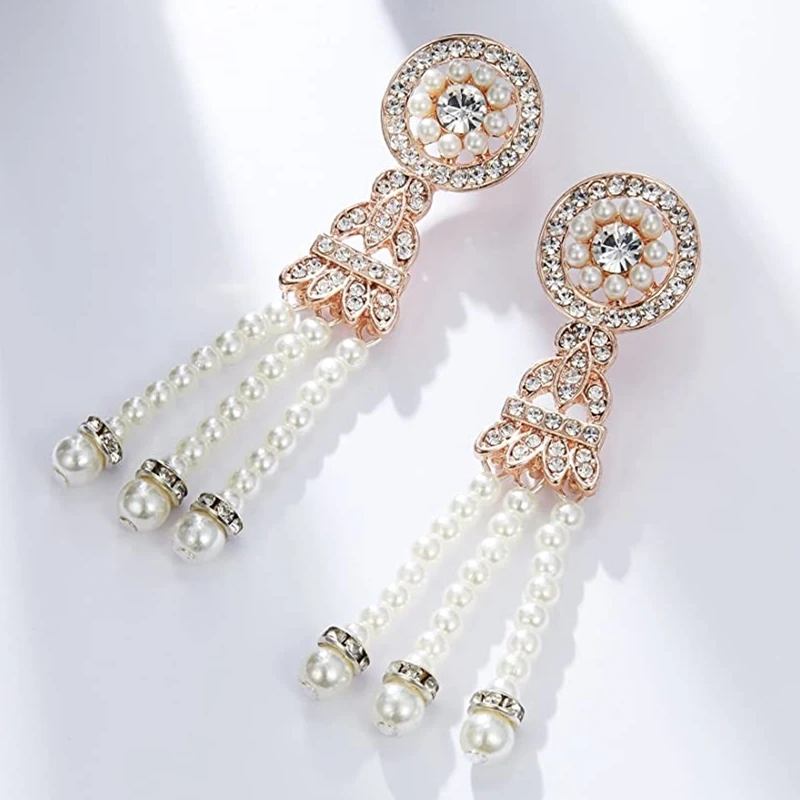 1920s Flapper Earrings 20s Art Deco Great Gatsby Earring Drop Rhinestone Jewelry Accessories Vintage Party Dangle Pearl Earrings