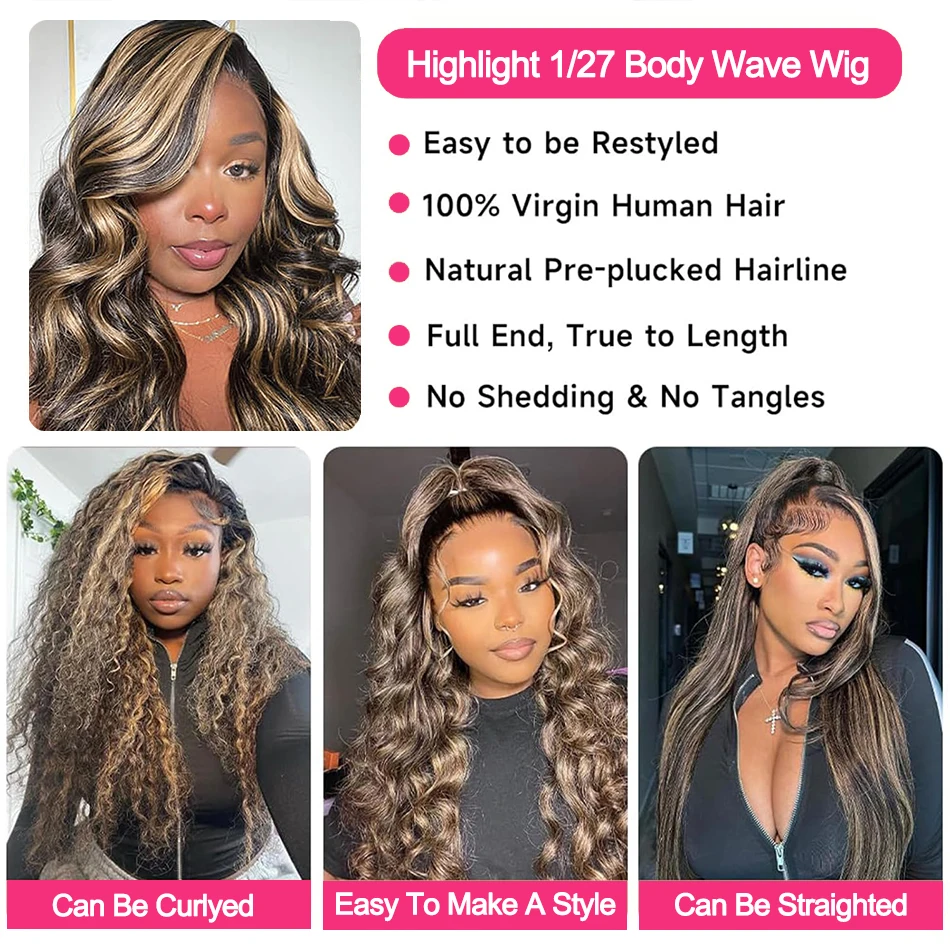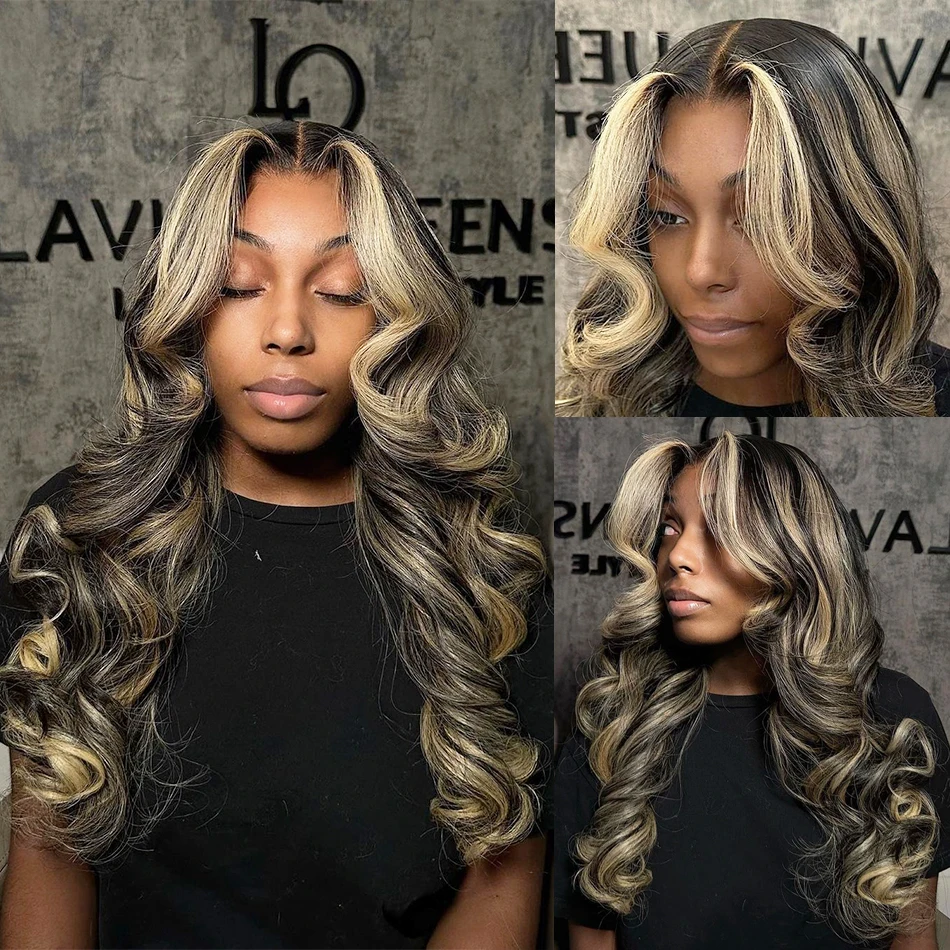 1B/27 Highlight 13X4 Lace Frontal Human Hair Wigs Ombre Colored Preplucked 30 Inch Body Wave Lace Front Wig Human Hair For Women