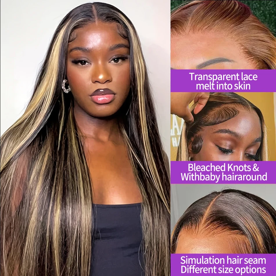 1B/27 Straight Highlight Wig Human Hair 30 Inch 13×4 HD Lace Frontal Wig 180 Density Natural Brazilian Hair Wig For Black Women