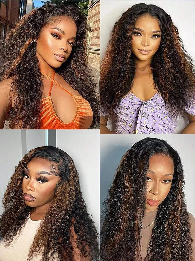 1B/30 Highlight Ombre Human Hair 13×4 Deep Wave Colored Lace Front Wigs Human Hair Pre Plucked with Baby Hair 180 Density