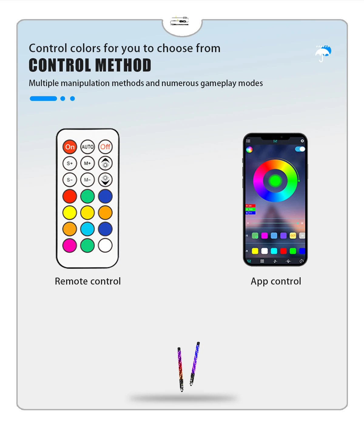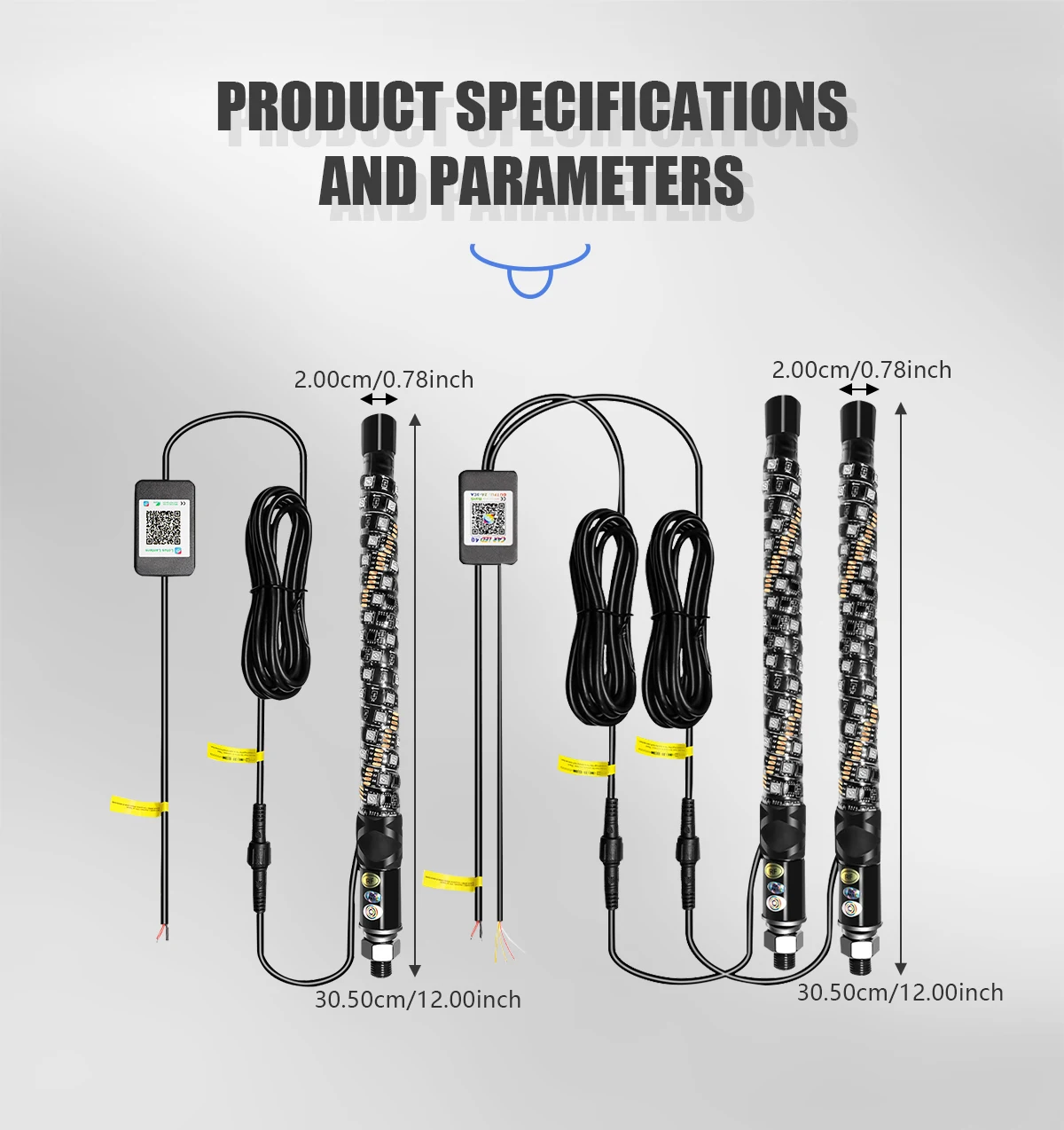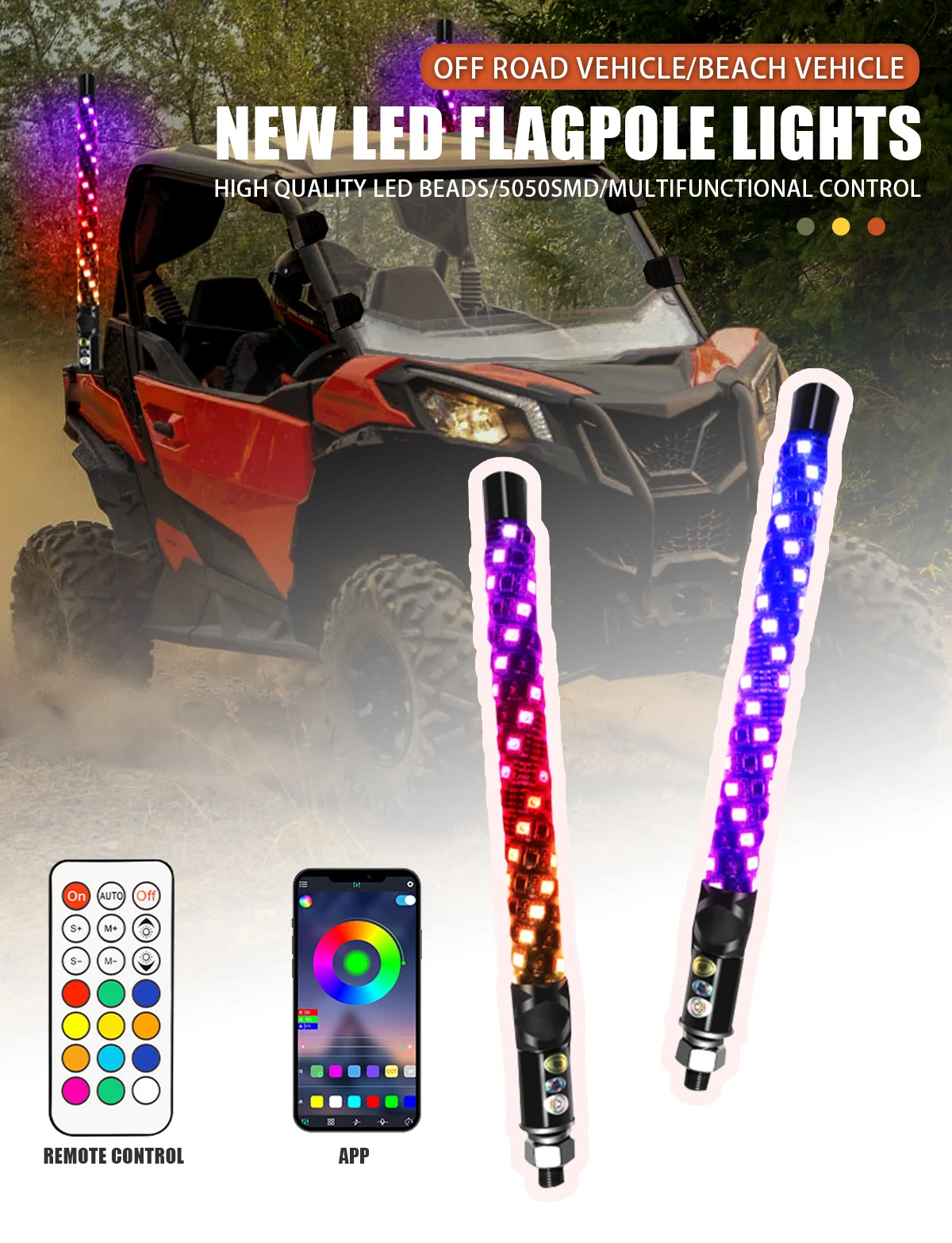 Remote Control: These whips can change colors and chase colors with the push of a button on the wireless remote controller, and the transmission distance is 10m.