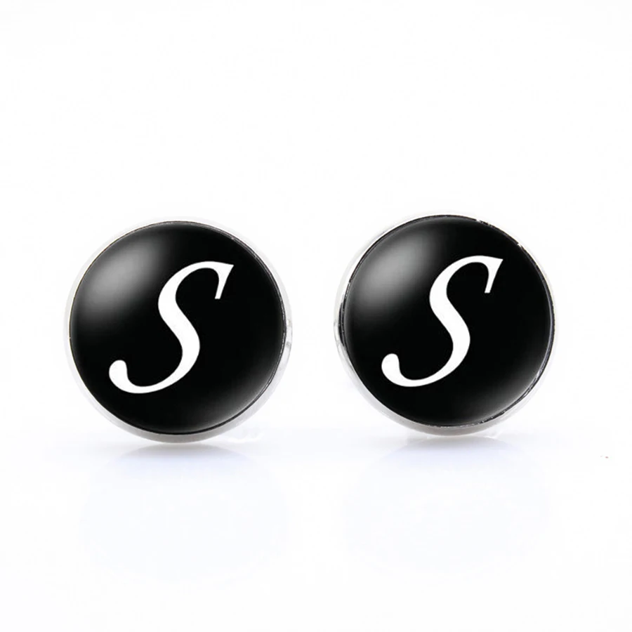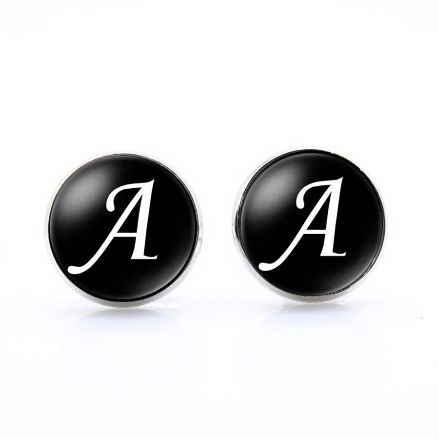1Pairs Initial Letter Cufflinks for Men .Single Alphabet Cuff Button for Male Shirt Wedding Souvenirs Gentleman Jewelry Gifts