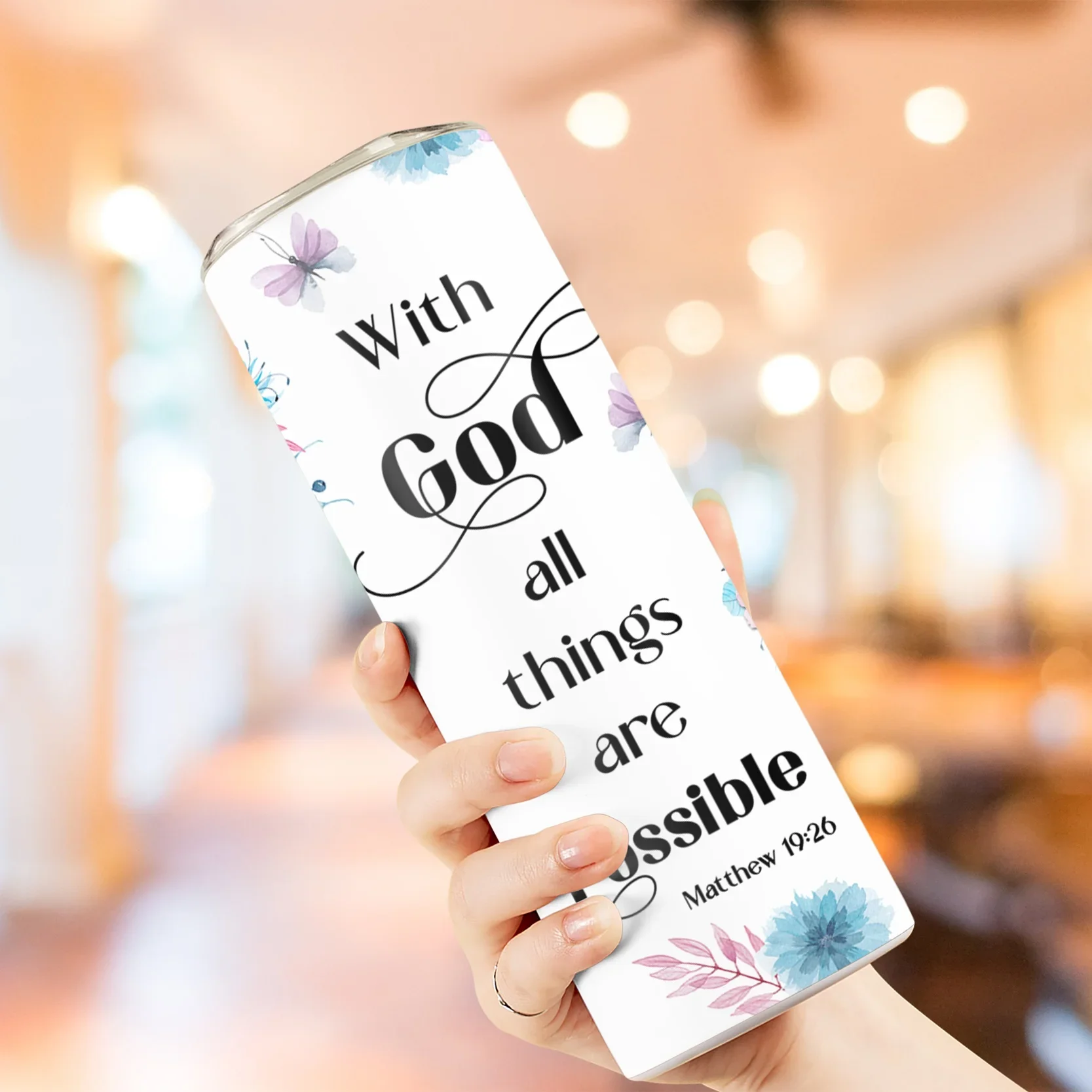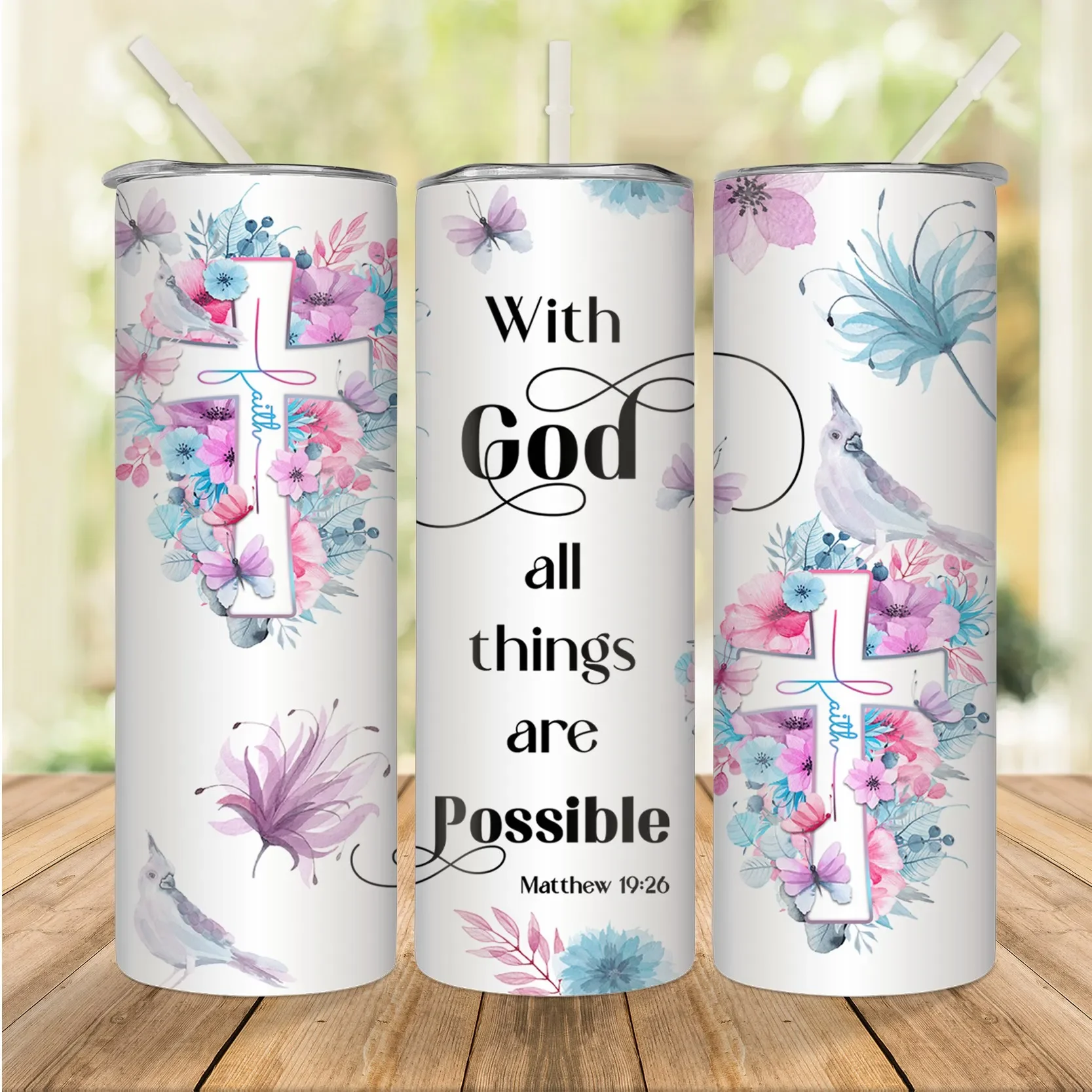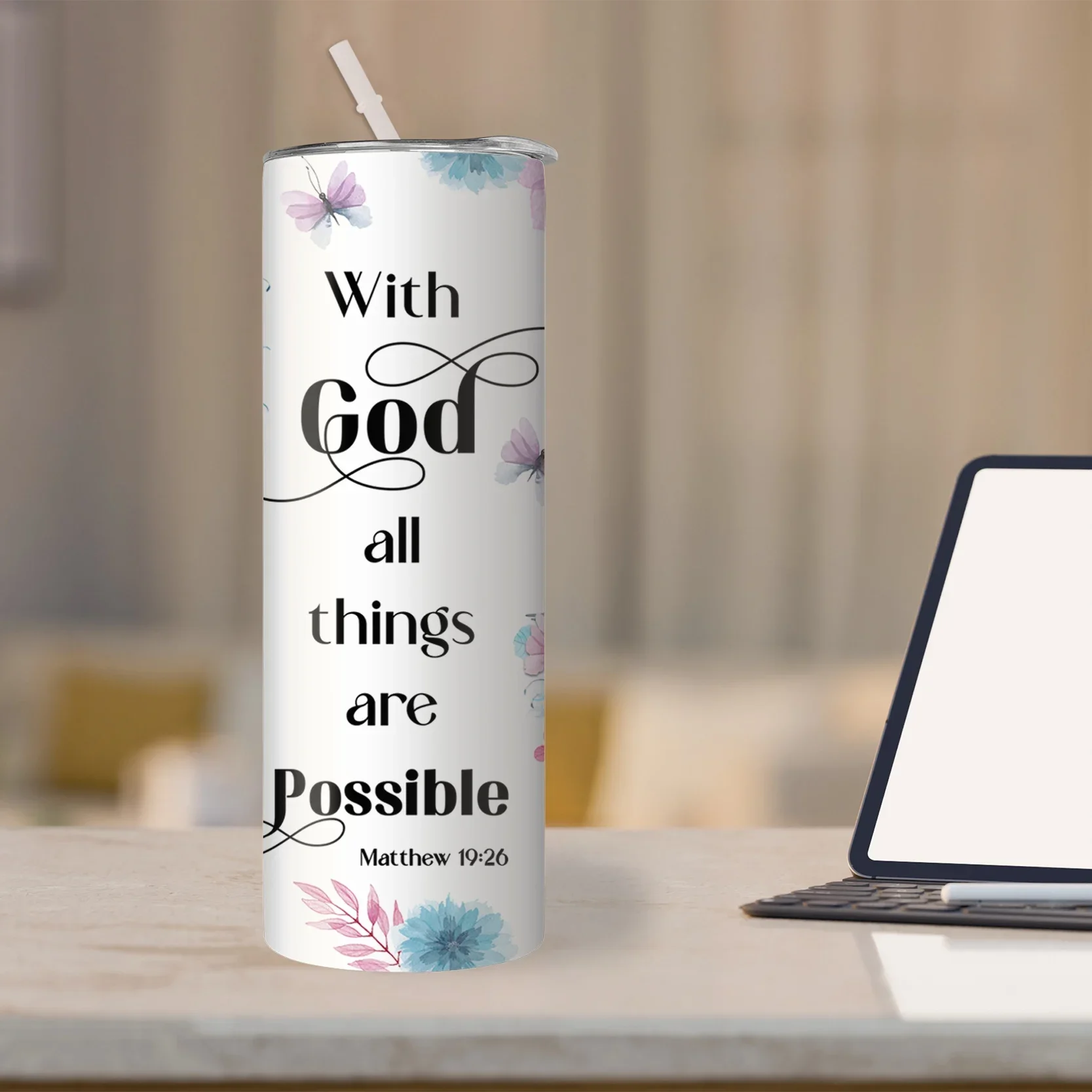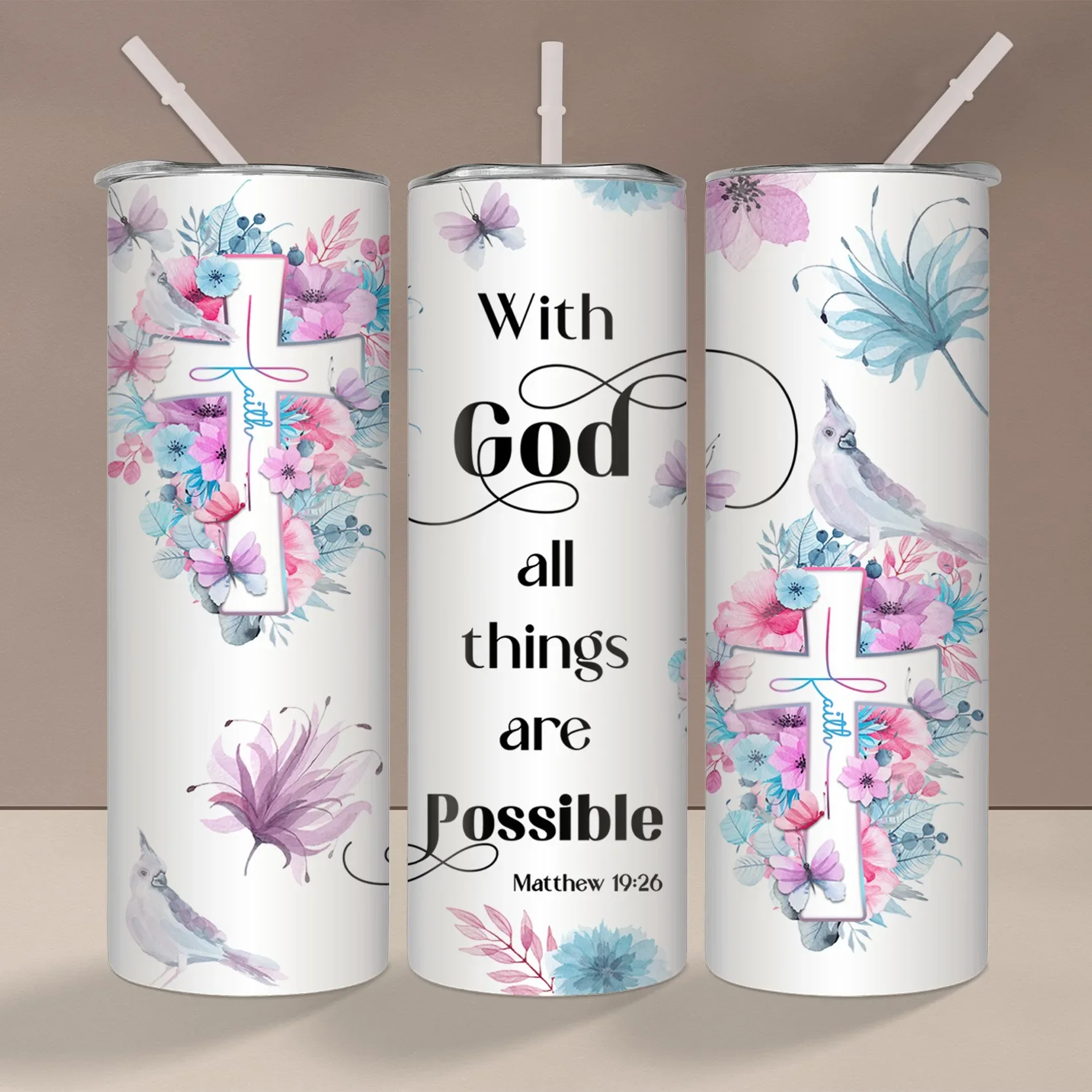 1pc 20oz With God All Things Are Possible Tumbler With Lid And Straw Christian Insulated Water Cups Summer Winter Drinkware